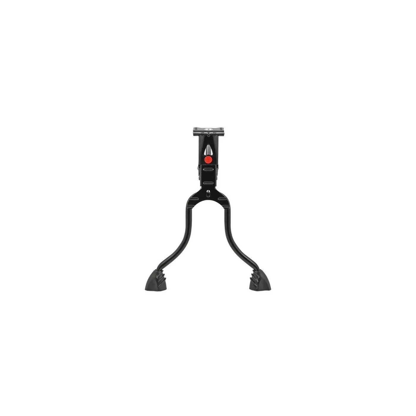 Klasyczny stojak na dwójnóg wykonany z wytrzymałej stali, która zapewnia dobrą stabilność nawet przy dużych obciążeniach. Musi być przymocowany bezpośrednio do płyty kontrującej stojaka. Ten dwójnóg jest odpowiedni dla rowerów 24" - 29" o maksymalnej wysokości do 29 cm. Może być używany z tylnym fotelikiem dziecięcym lub większymi sakwami. Głównie do użytku z rowerami miejskimi. Dostarczany z płytą oporową, osłoną ramy i śrubą M10.