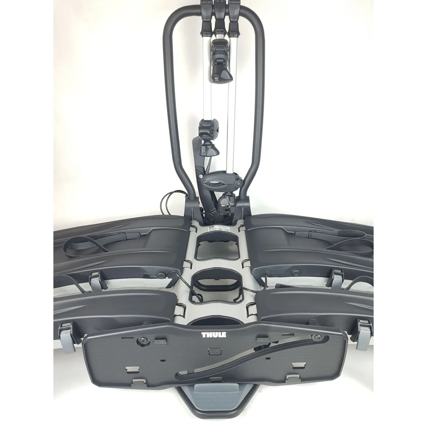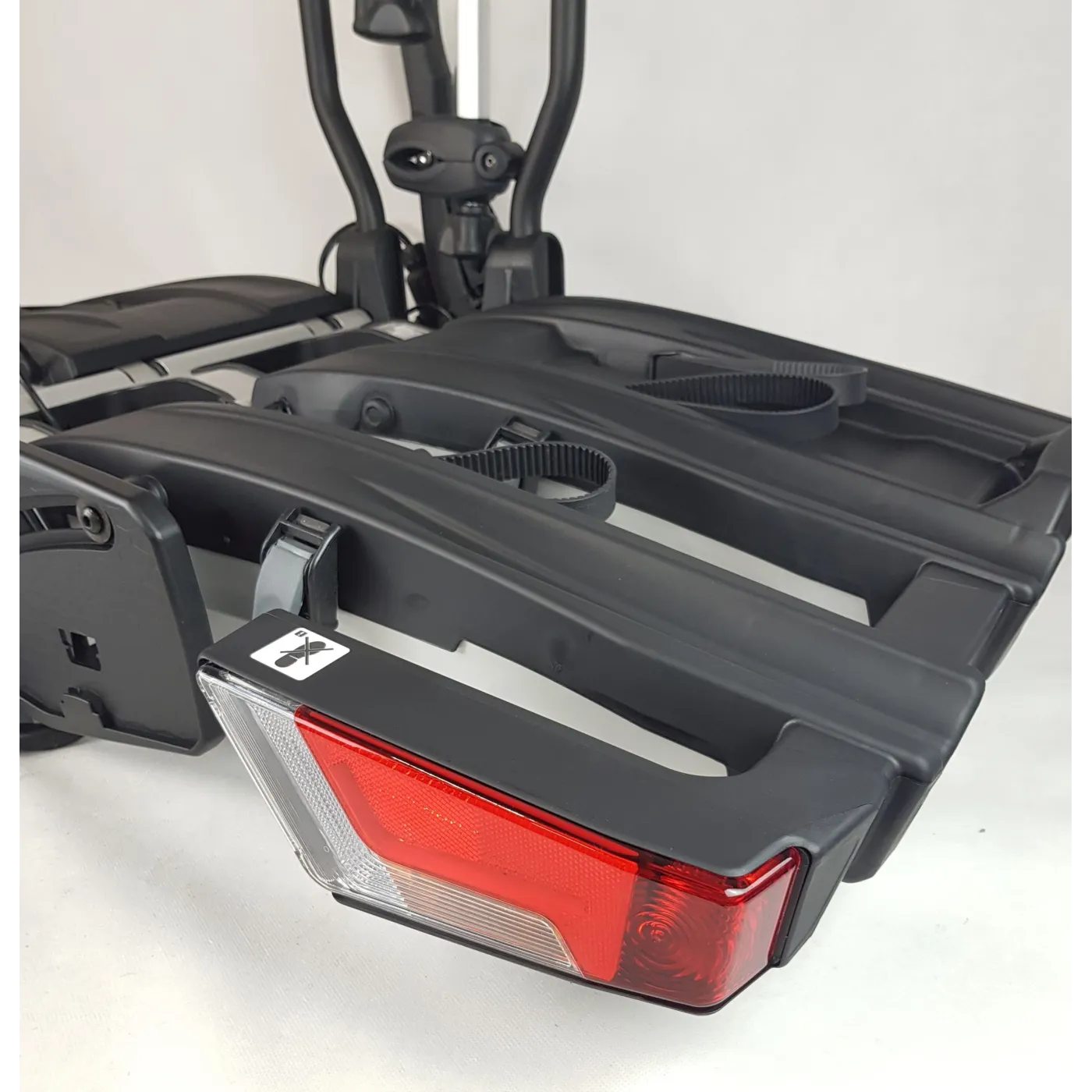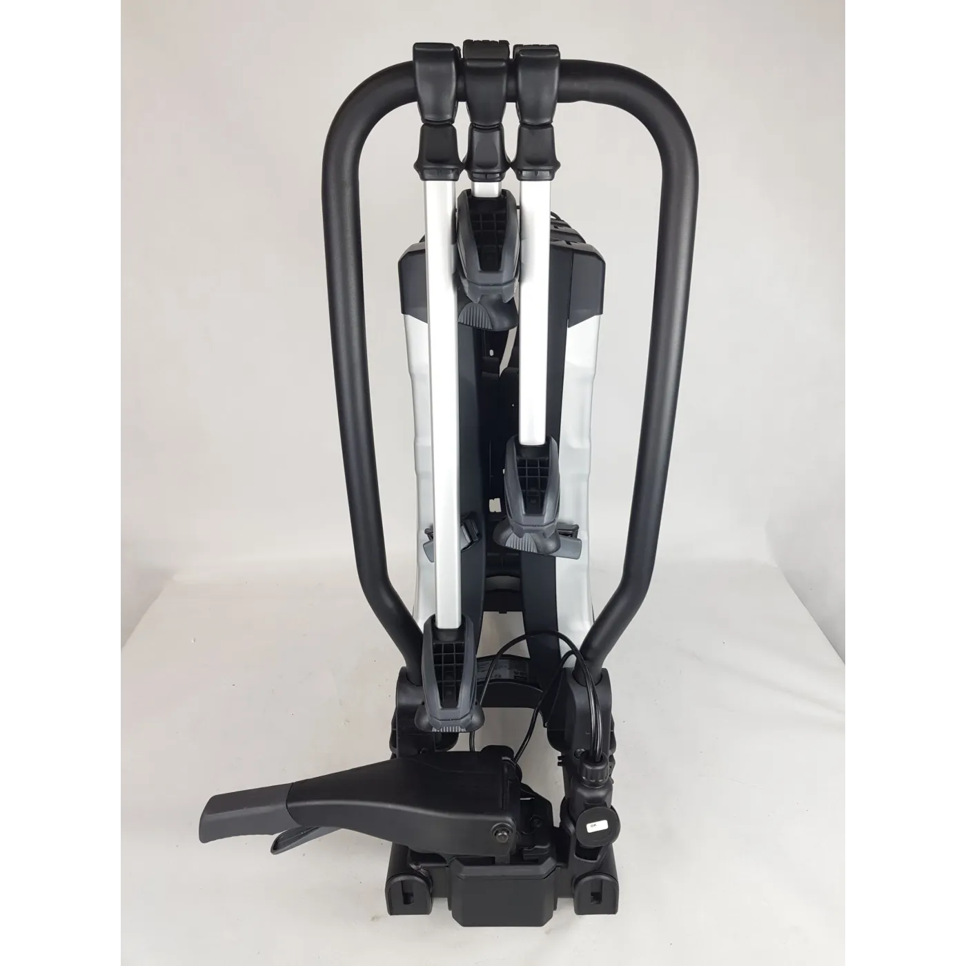 Thule EasyFold XT3 to w pełni składany bagażnik rowerowy o dużej ładowności pozwalającej na przewożenie trzech jednośladów na raz – w tym cięższych modeli górskich, fat bike’ów czy elektrycznych. Maksymalna masa roweru, który można zamontować to 30 kg, a średnica ramy nie może być większa nić 80 mm. Rowery przytwierdzane do bagażnika są stabilne i bezpiecznie dzięki 3-punktowemu montażowi – pas z klamrą na każde koło oraz pojedyncze ramie z gałką AcuTight z regulacją siły mocowania na ramie. Każdy rower zabezpieczany jest również zamkiem na kluczyk w systemie One Key. Sam bagażnik przeznaczony jest do montażu na haku holowniczym, a proces ten jest łatwy dzięki wstępnej stabilizacji na kuli haka.