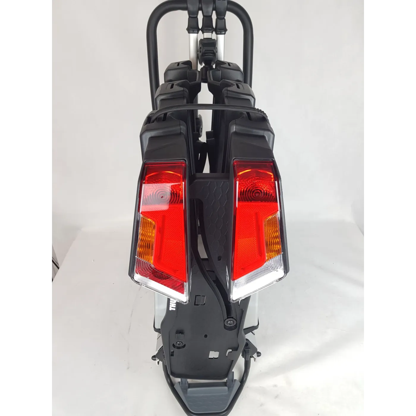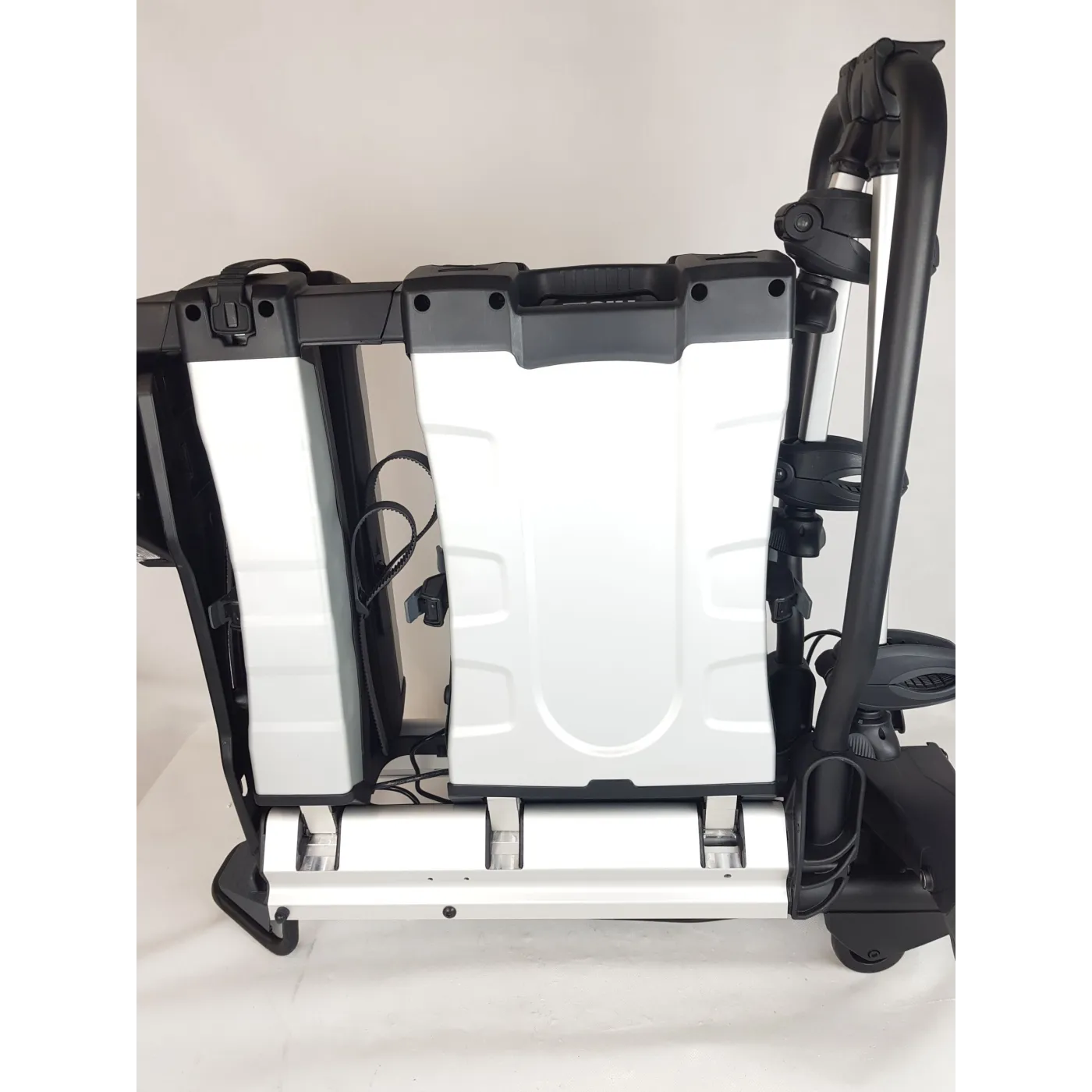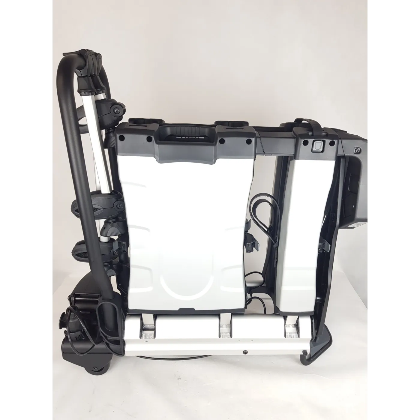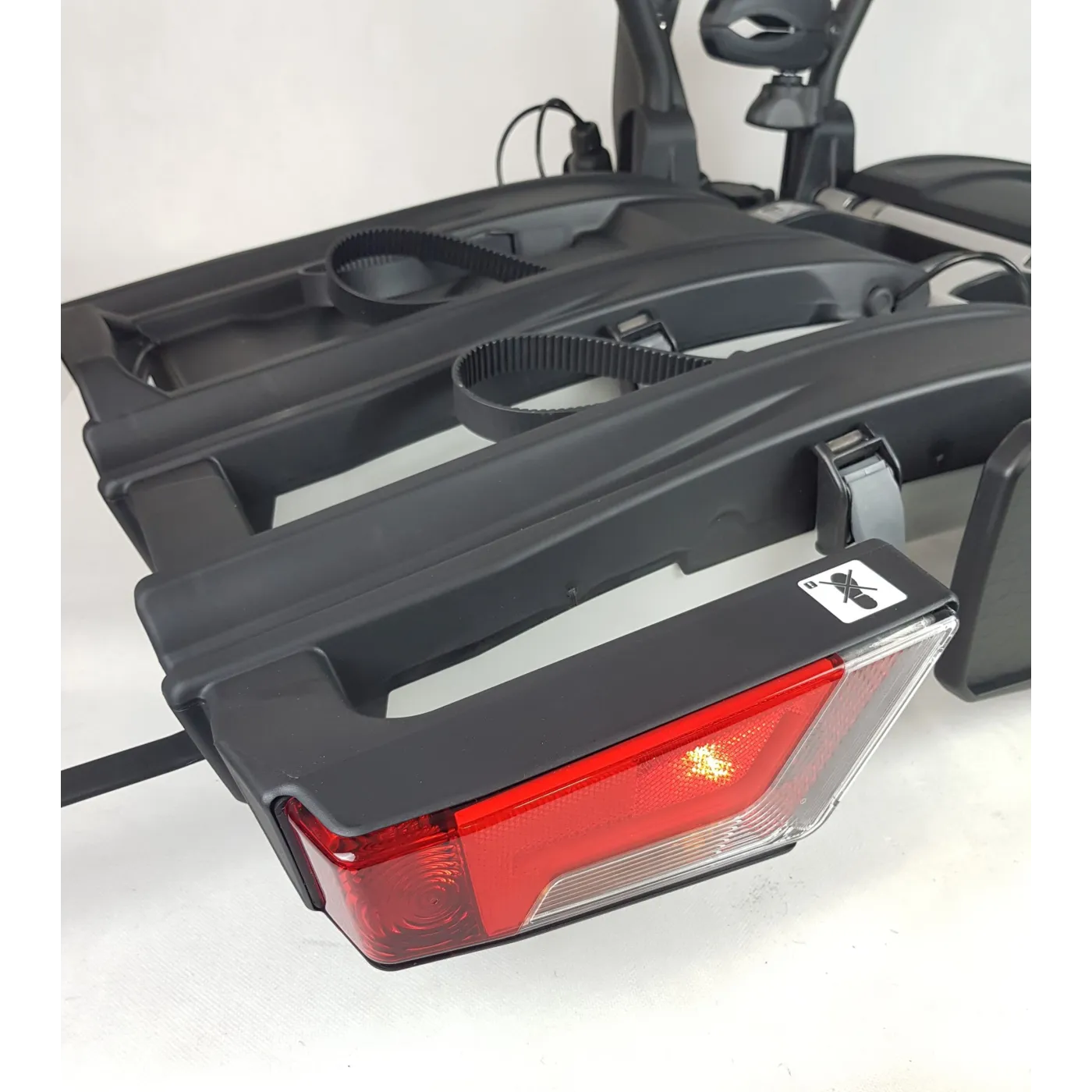 Thule EasyFold XT3 to w pełni składany bagażnik rowerowy o dużej ładowności pozwalającej na przewożenie trzech jednośladów na raz – w tym cięższych modeli górskich, fat bike’ów czy elektrycznych. Maksymalna masa roweru, który można zamontować to 30 kg, a średnica ramy nie może być większa nić 80 mm. Rowery przytwierdzane do bagażnika są stabilne i bezpiecznie dzięki 3-punktowemu montażowi – pas z klamrą na każde koło oraz pojedyncze ramie z gałką AcuTight z regulacją siły mocowania na ramie. Każdy rower zabezpieczany jest również zamkiem na kluczyk w systemie One Key. Sam bagażnik przeznaczony jest do montażu na haku holowniczym, a proces ten jest łatwy dzięki wstępnej stabilizacji na kuli haka.