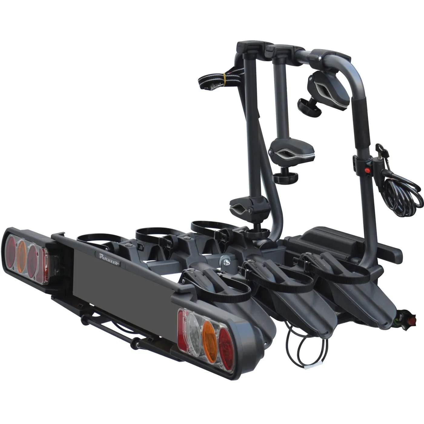 Uchwyt rowerowy Peruzzo Pure Instinct 708 jest przeznaczony do przewozu maksymalnie 3 rowerów. Każdy rower stoi pewnie i stabilnie na szerokiej szynie mocującej i jest dodatkowo mocowany za pomocą ramienia mocującego, które jest wyposażone w zamek zabezpieczający rower. Model ten jest mocowany do kuli zaczepowej za pomocą superwygodnego systemu Quick Release. Skuteczne urządzenie antykradzieżowe zabezpiecza koła i uchwyt roweru.