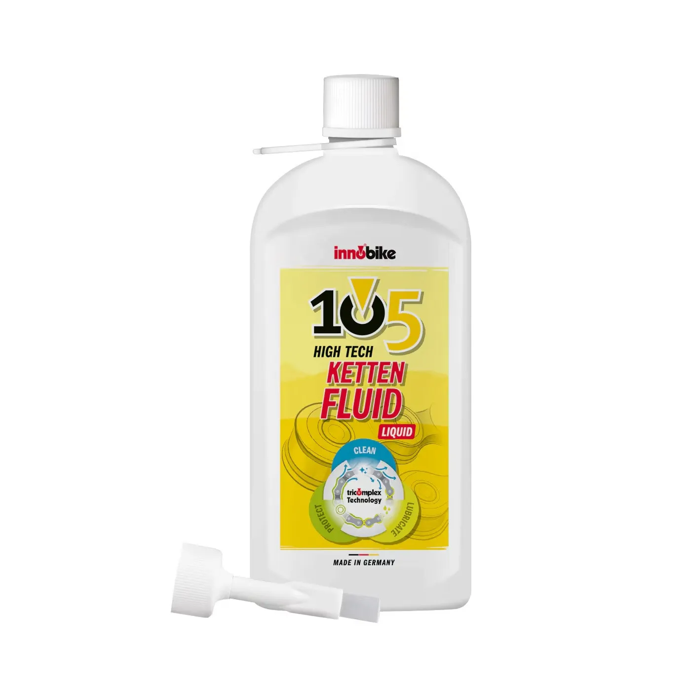Innotech 105 High Tech Liquid to sprawdzone rozwiązanie 4 w 1 dla Twojego łańcucha – teraz w wygodnej, płynnej formie. 💧Preparat jednocześnie czyści, rozpuszcza zabrudzenia, smaruje i chroni, zapewniając płynną oraz cichą pracę napędu.