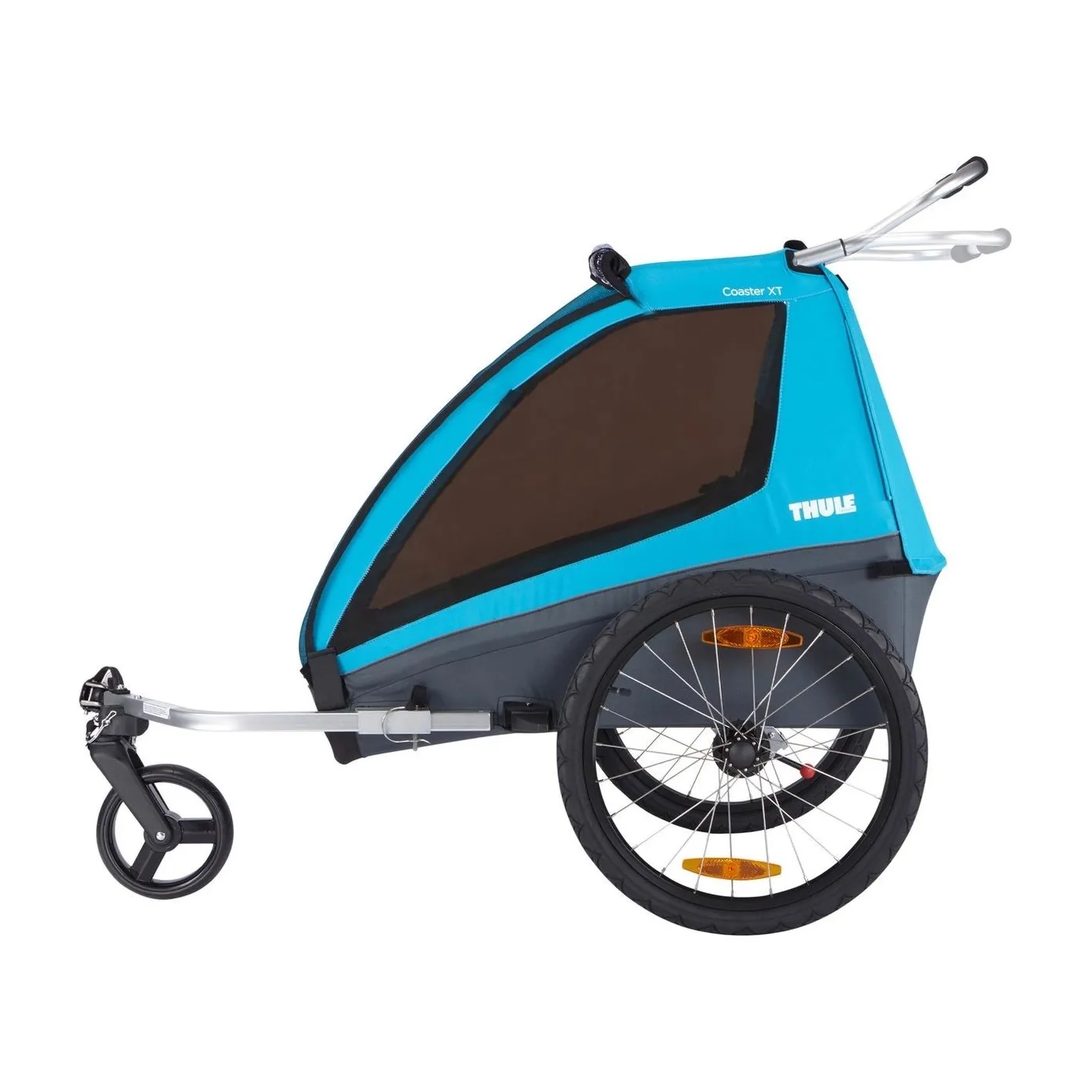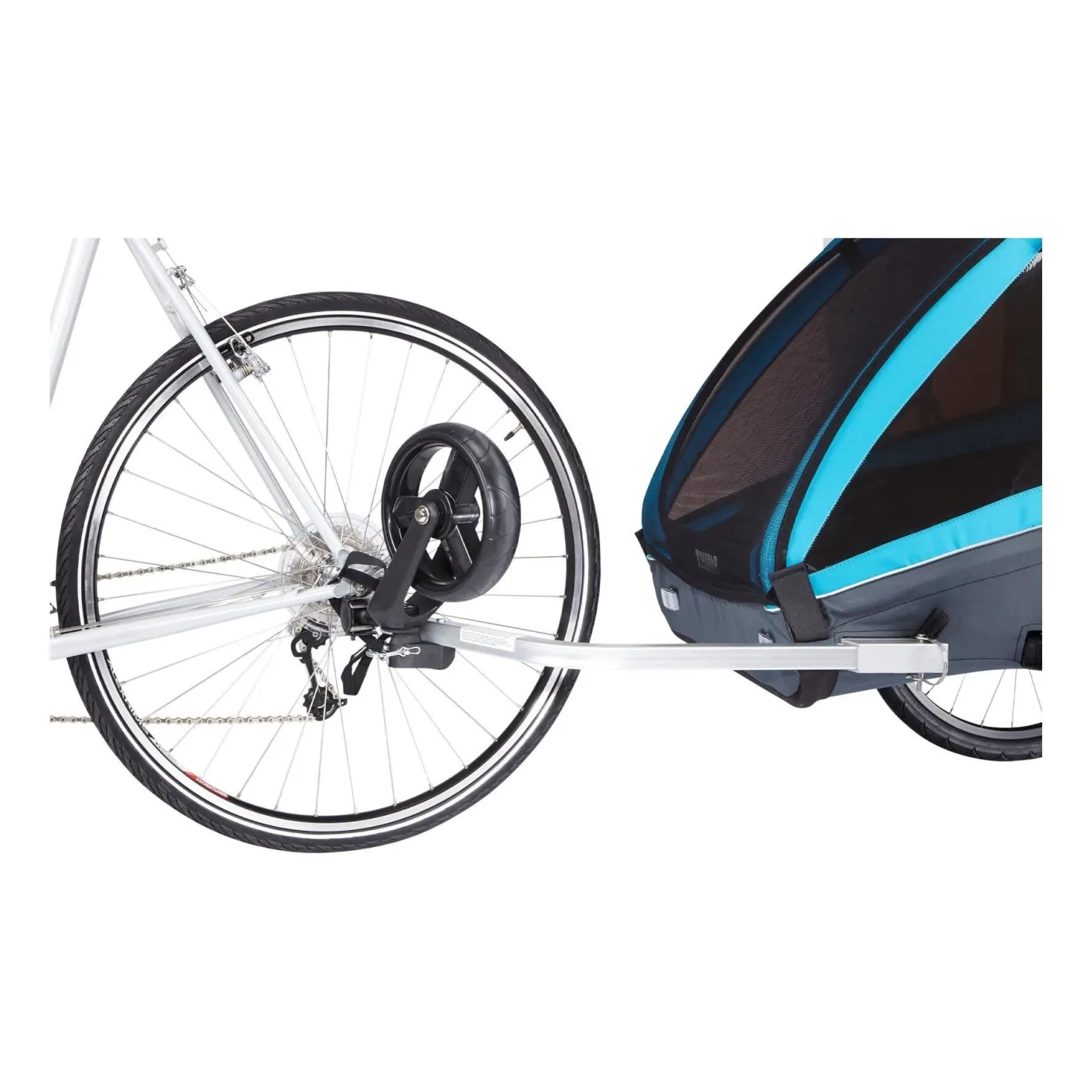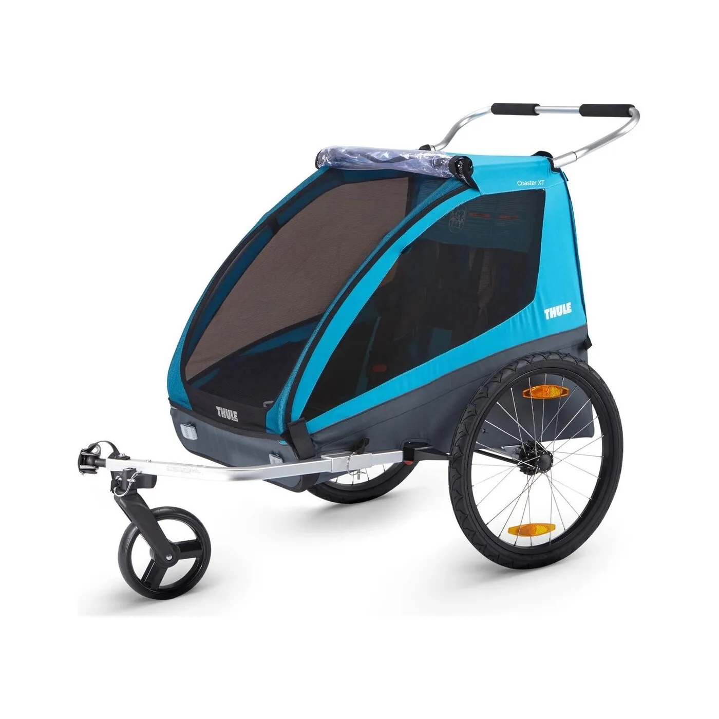 W przyczepce możesz wozić jedno lub dwójkę dzieci. Po dotarciu do celu możesz łatwo przekształcić ją w wózek spacerowy. Ponadto posiada przestrzeń na zakupy czy niezbędne rzeczy. Wyposażona jest w okna boczne oraz przednie zabezpieczone moskitierą. Przednie okno posiada również folię przeciwdeszczową.