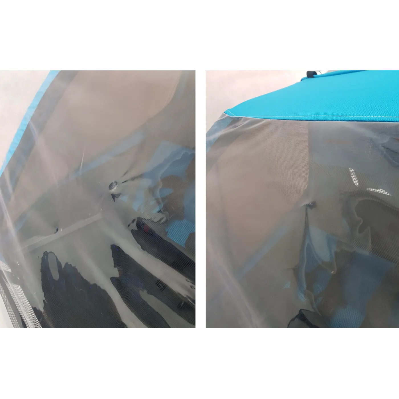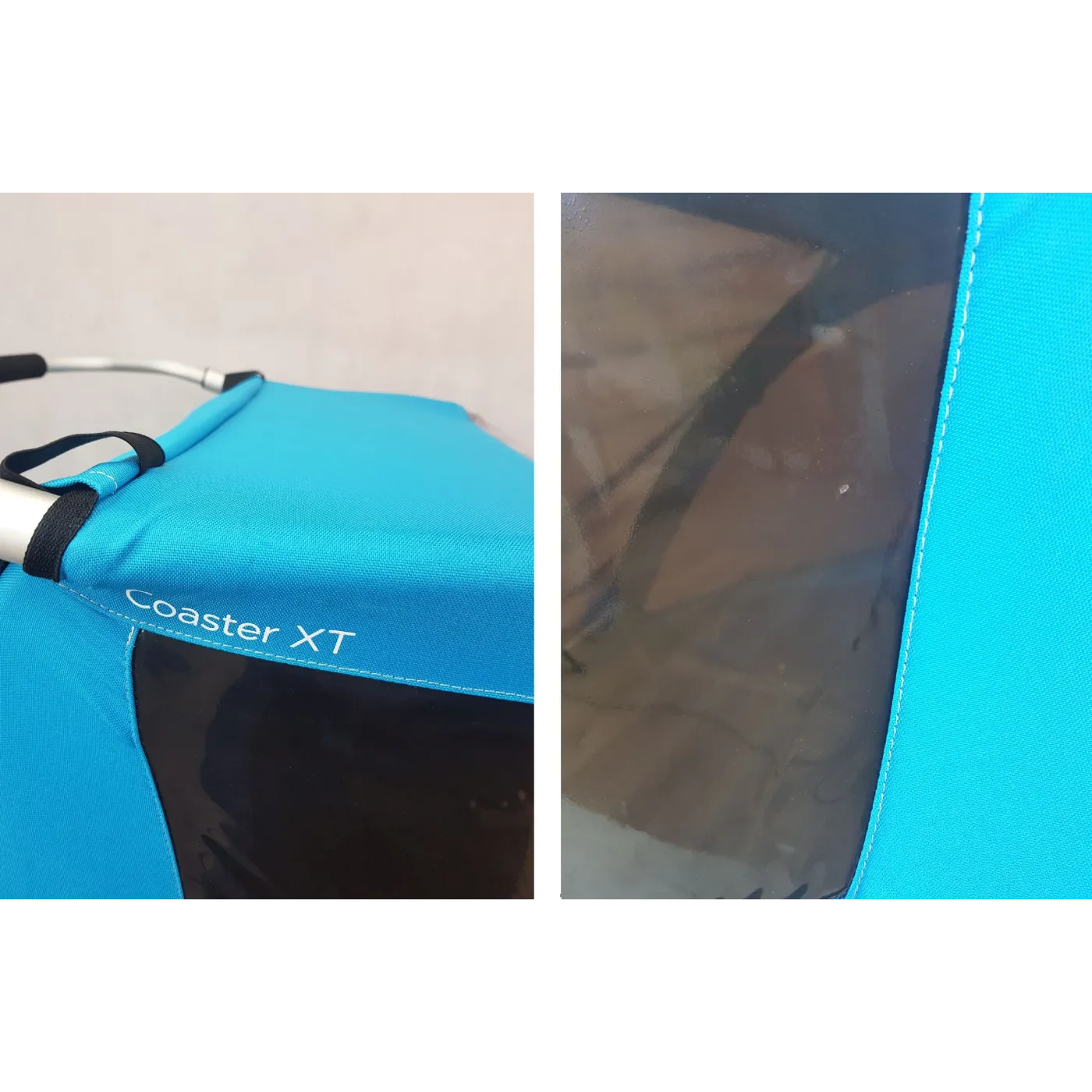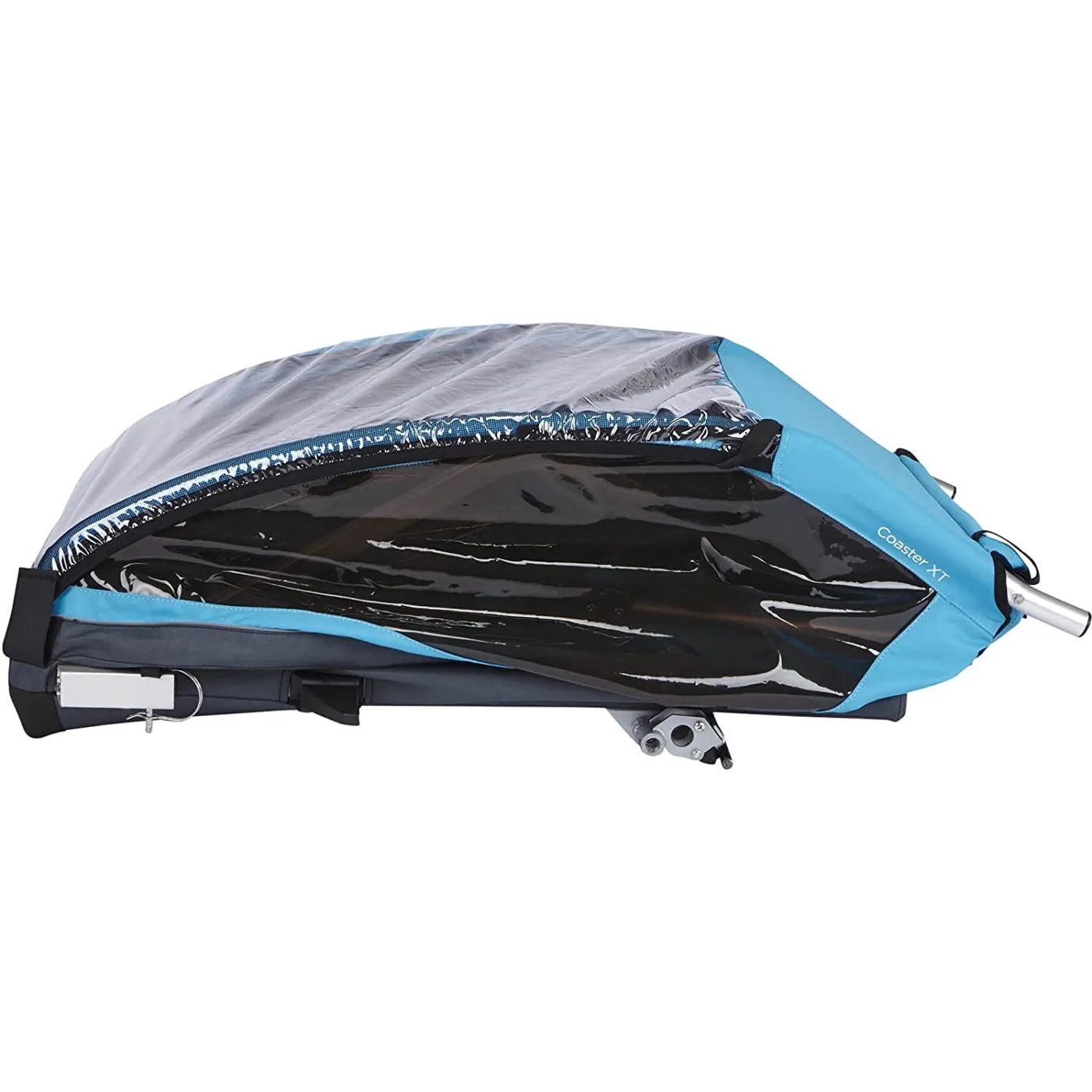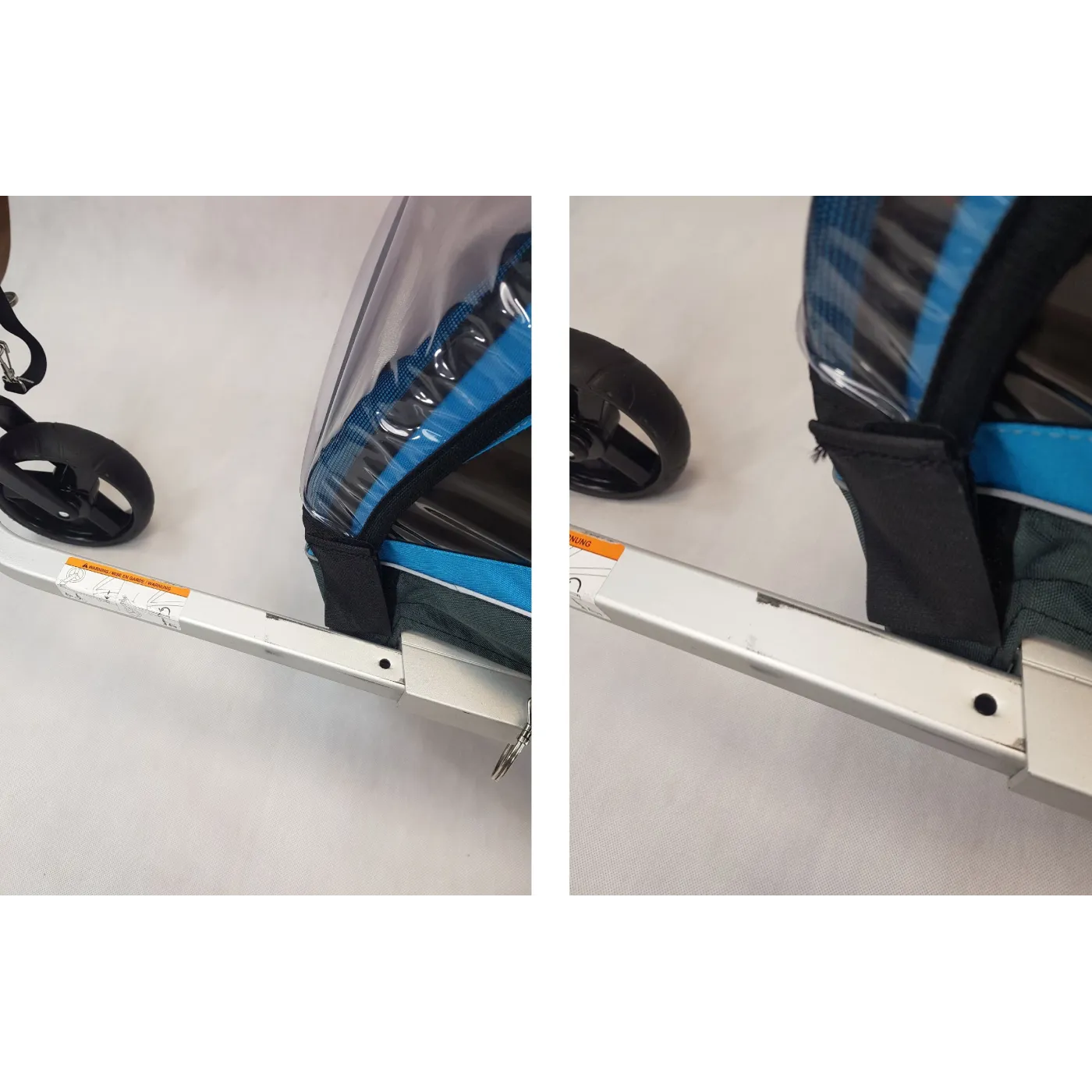 W przyczepce możesz wozić jedno lub dwójkę dzieci. Po dotarciu do celu możesz łatwo przekształcić ją w wózek spacerowy. Ponadto posiada przestrzeń na zakupy czy niezbędne rzeczy. Wyposażona jest w okna boczne oraz przednie zabezpieczone moskitierą. Przednie okno posiada również folię przeciwdeszczową.