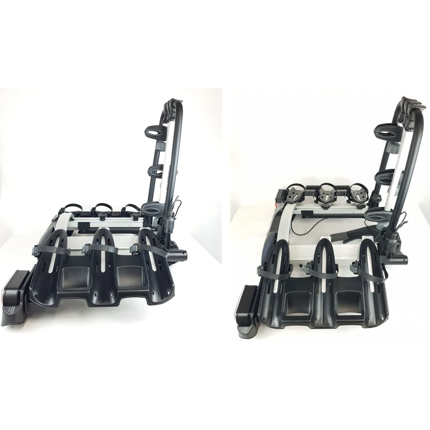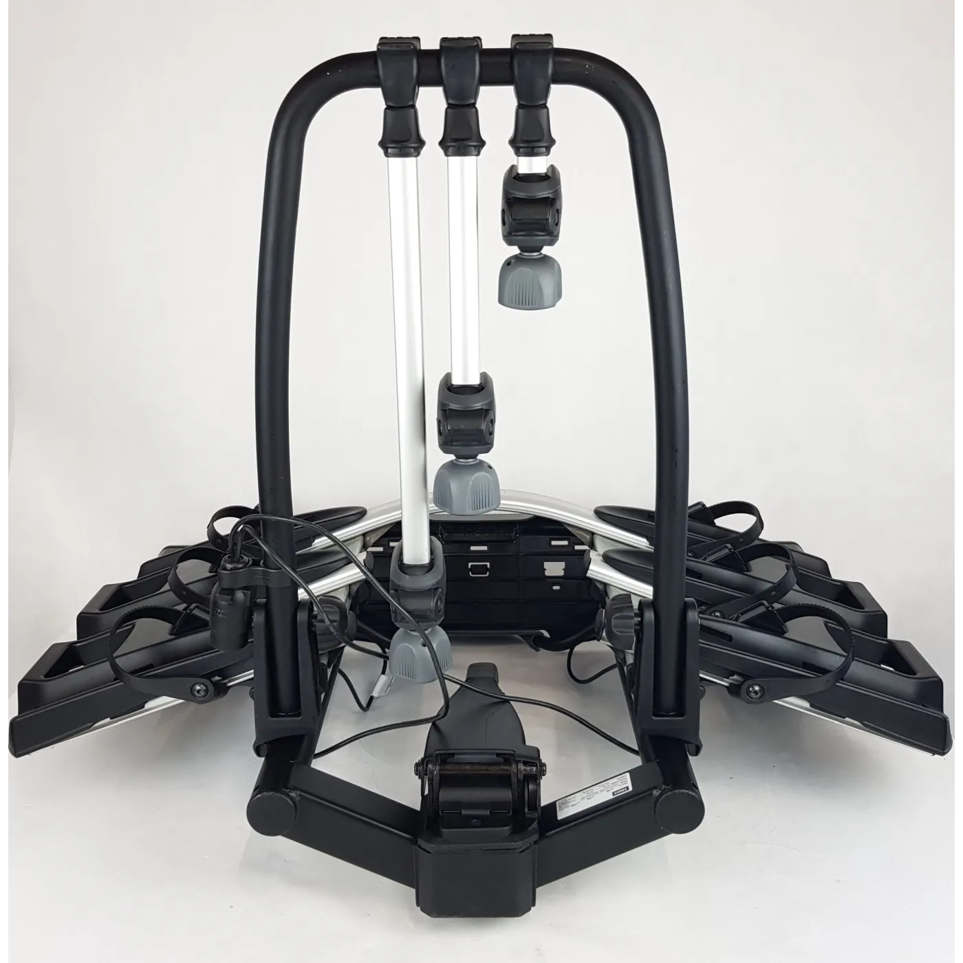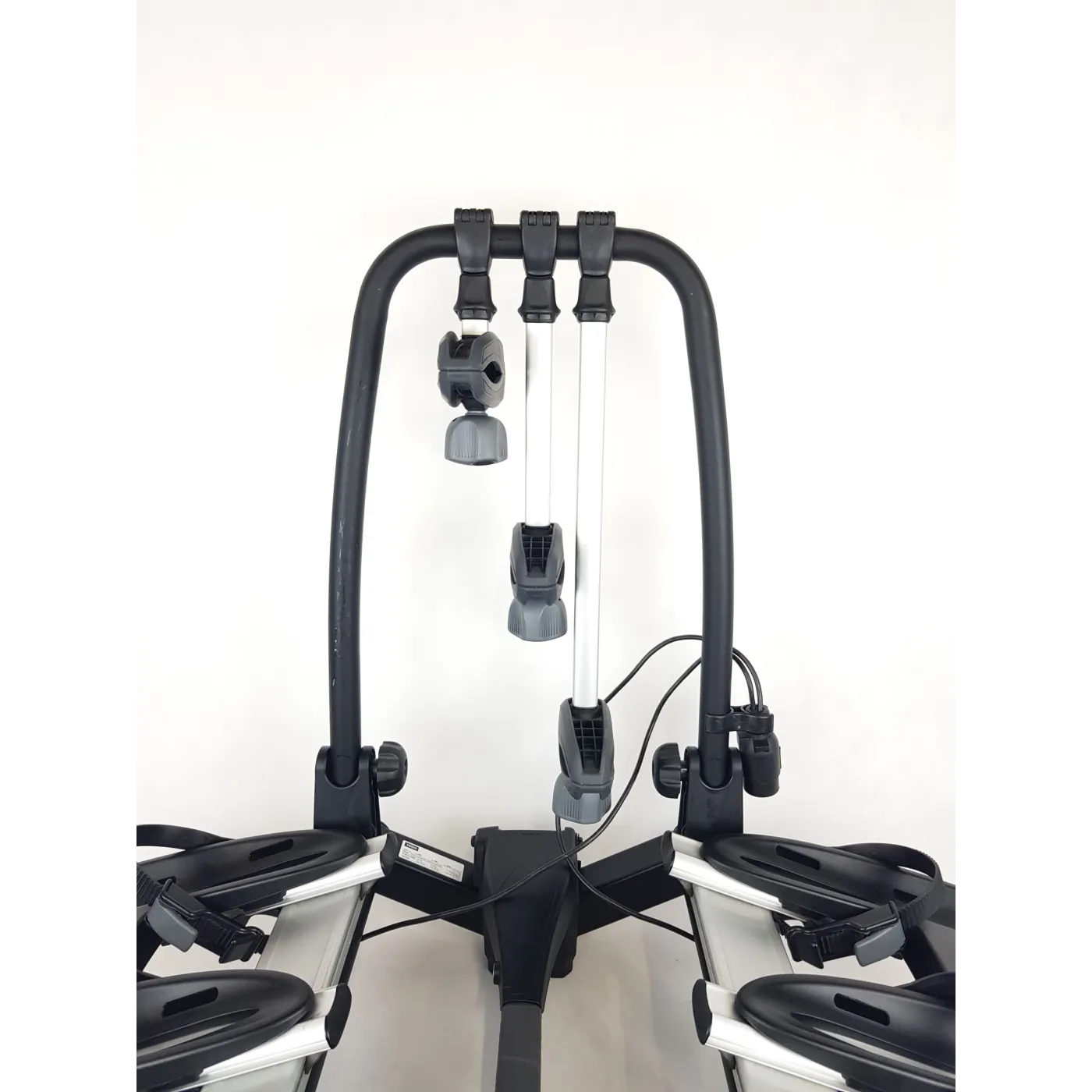 Thule VeloCompact 927 to rowerowy bagażnik na hak przeznaczony do przewozu trzech rowerów. Idealnie nadaje się do codziennego użytku. Jego zaletami w tym zakresie są: prosty montaż, niewielkie rozmiary, możliwość złożenia, po którym powinien zmieścić się do każdego samochodu oraz możliwy dostęp do wnętrza samochodu nawet z zamocowanymi rowerami. Dzięki stabilnemu mocowaniu produkt umożliwia regulację bagażnika przed zamknięciem uchwytu mocującego. Do zamontowania bagażnika niepotrzebne są jakiekolwiek narzędzia.