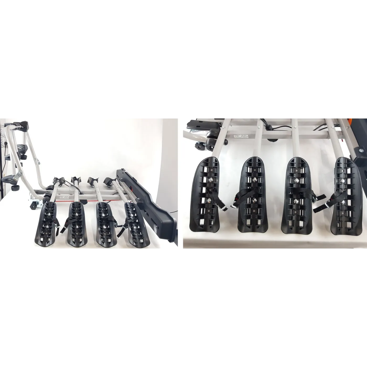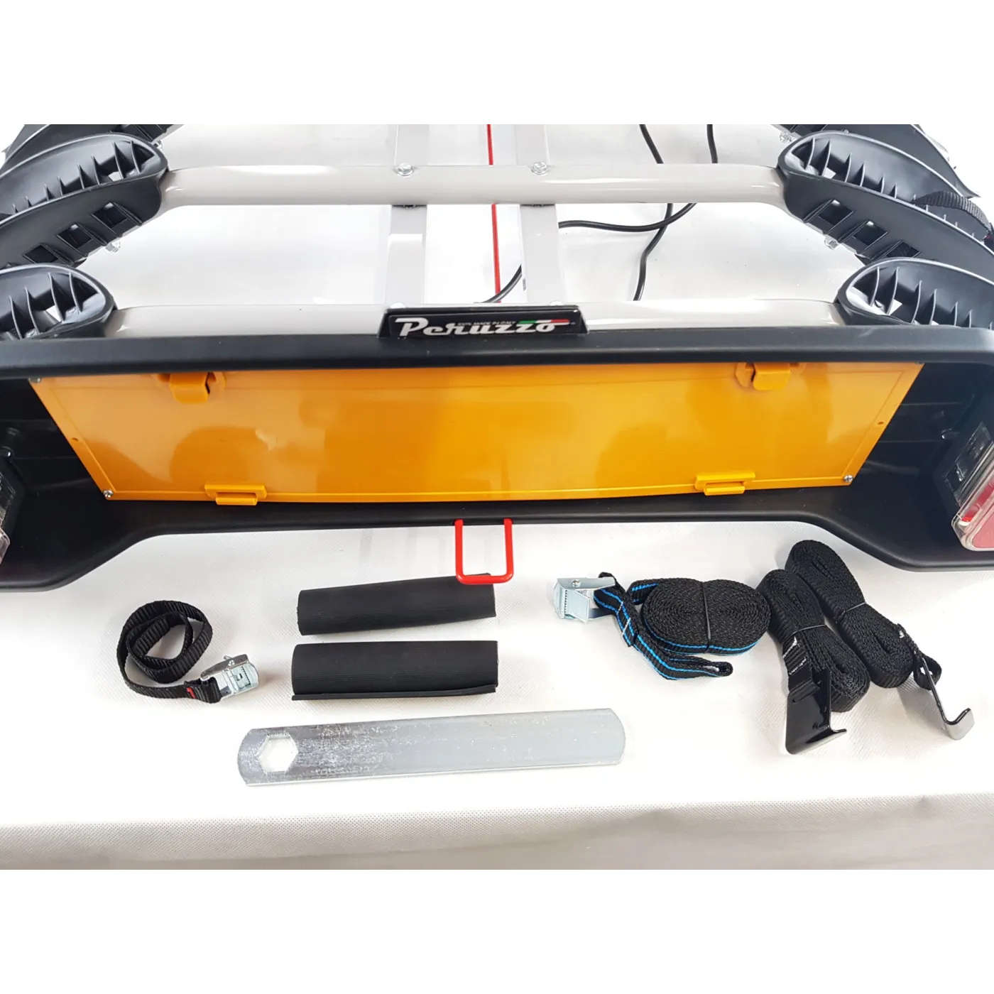 Peruzzo Siena 4 to ekonomiczna, pewna i trwała platforma mocowana na hak. Wyposażona została w światła i miejsce do montowania tablicy rejestracyjnej. Inteligentne mocowanie pasuje do większości haków holowniczych. W komplecie znajdują się dwa uchwyty do mocowania rowerów. Składane ramię ułatwia przenoszenie oraz przechowywanie.