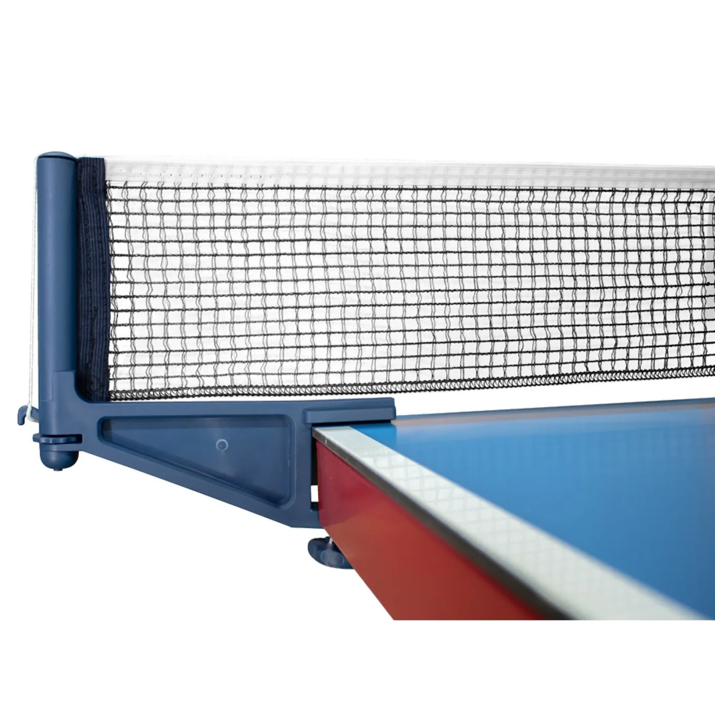 💨 Powłoka stołu jest pokryta warstwą antyodblaskową, co gwarantuje komfort gry nawet w pełnym słońcu. Całość wsparta została na stabilnej konstrukcji ramy profilowej 50 mm, która nadaje mu wyjątkową trwałość i odporność na intensywne użytkowanie. Dużym udogodnieniem są także 8 podwójnych, obrotowych kółek z funkcją blokowania, które umożliwiają łatwe przestawianie stołu w dowolne miejsce, niezależnie od podłoża.