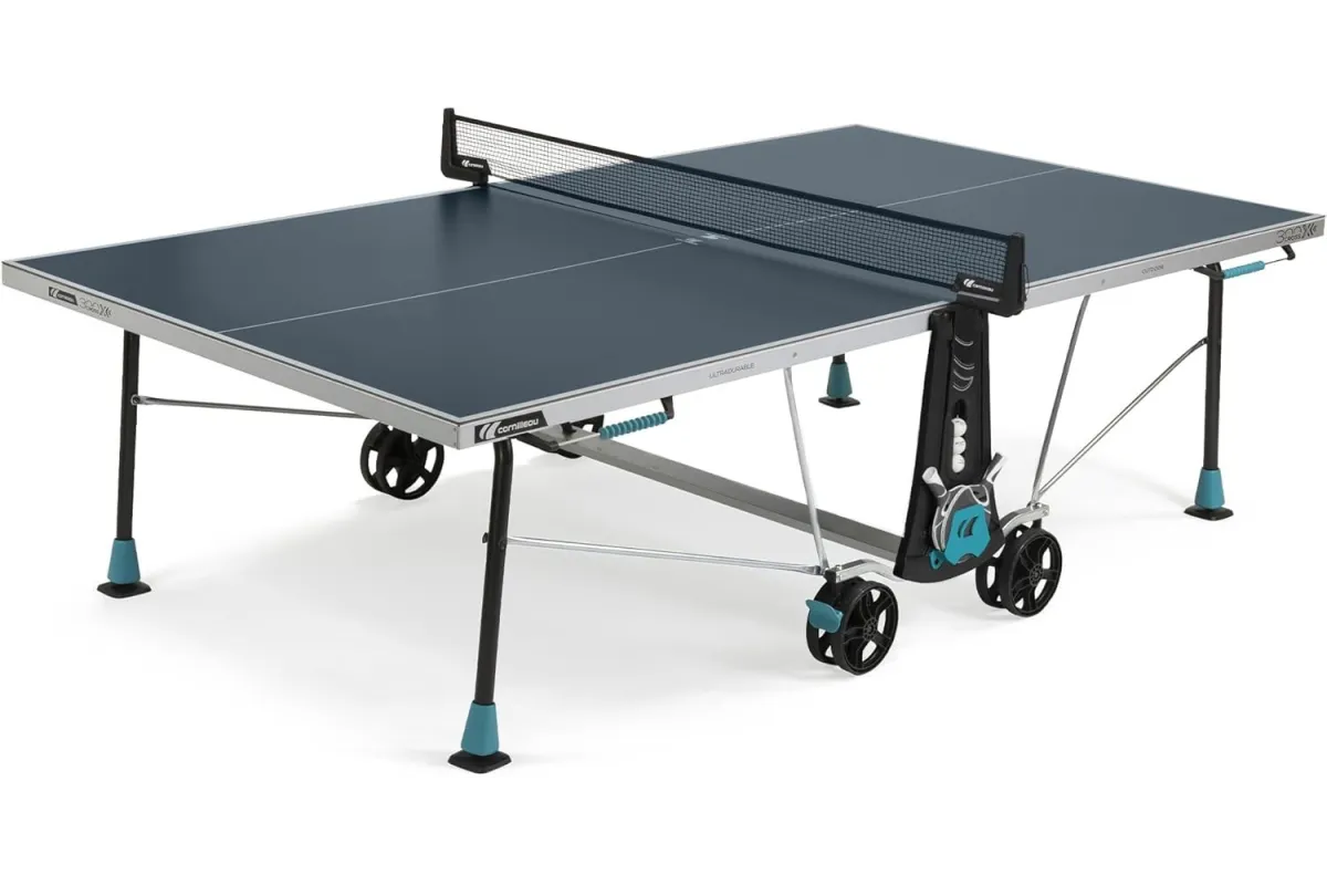 🏓 Cornilleau 300X Outdoor Niebieski to wytrzymały stół do tenisa stołowego, zaprojektowany do intensywnego użytkowania na zewnątrz. Idealnie sprawdza się w ogrodzie, na tarasie czy na terenie rekreacyjnym. Dzięki solidnej konstrukcji oraz zaawansowanym technologiom, model 300X zapewnia nie tylko doskonałą jakość gry, ale także odporność na zmienne warunki atmosferyczne.