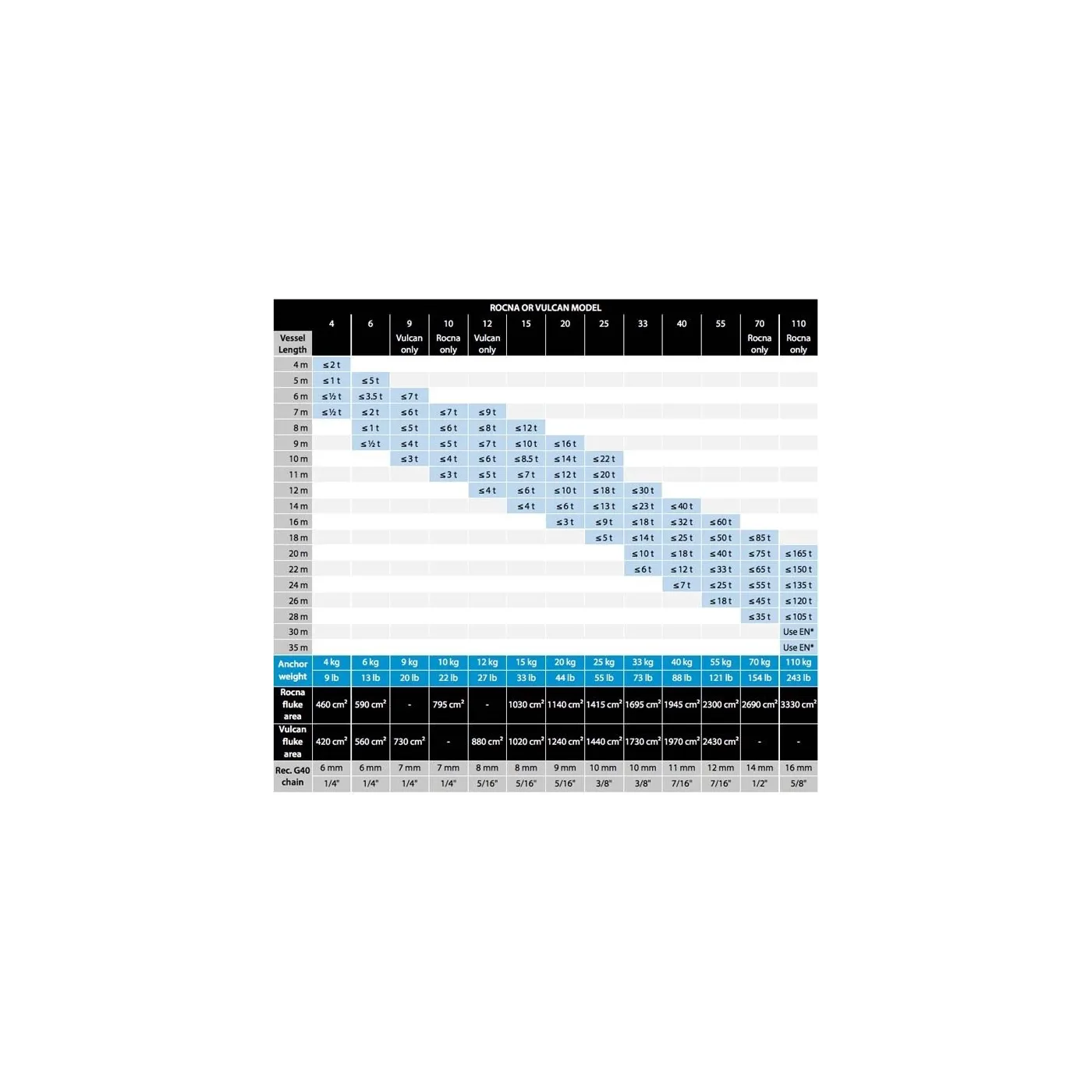 Kotwica Rocna Vulcan ma dobre właściwości kotwiące (wysoka siła trzymania, a także szybkie i niezawodne wkopanie). Jest kompaktowa. VULCAN ma specjalną kombinację trzonka kotwicy, przywr i innowacyjnej krawędzi „roll palm”. Krawędź zwijana w połączeniu z okrągłym wałem kotwy działa jak pałąk i zawsze ustawia kotwę we właściwej pozycji. „V-Bulb” przesuwa środek ciężkości kotwy w dół, a także na koniec przewodu kominowego i wspomaga proces wkopania. Ze względu na wklęsły kształt powierzchnia przywr jest powiększona, co skutkuje bardzo dużą siłą trzymania.  Specjalny profil wału kotwiącego zapewnia szczególnie dobre dopasowanie do wsporników kotwiących.