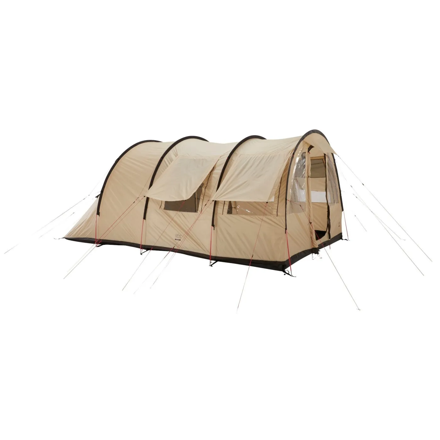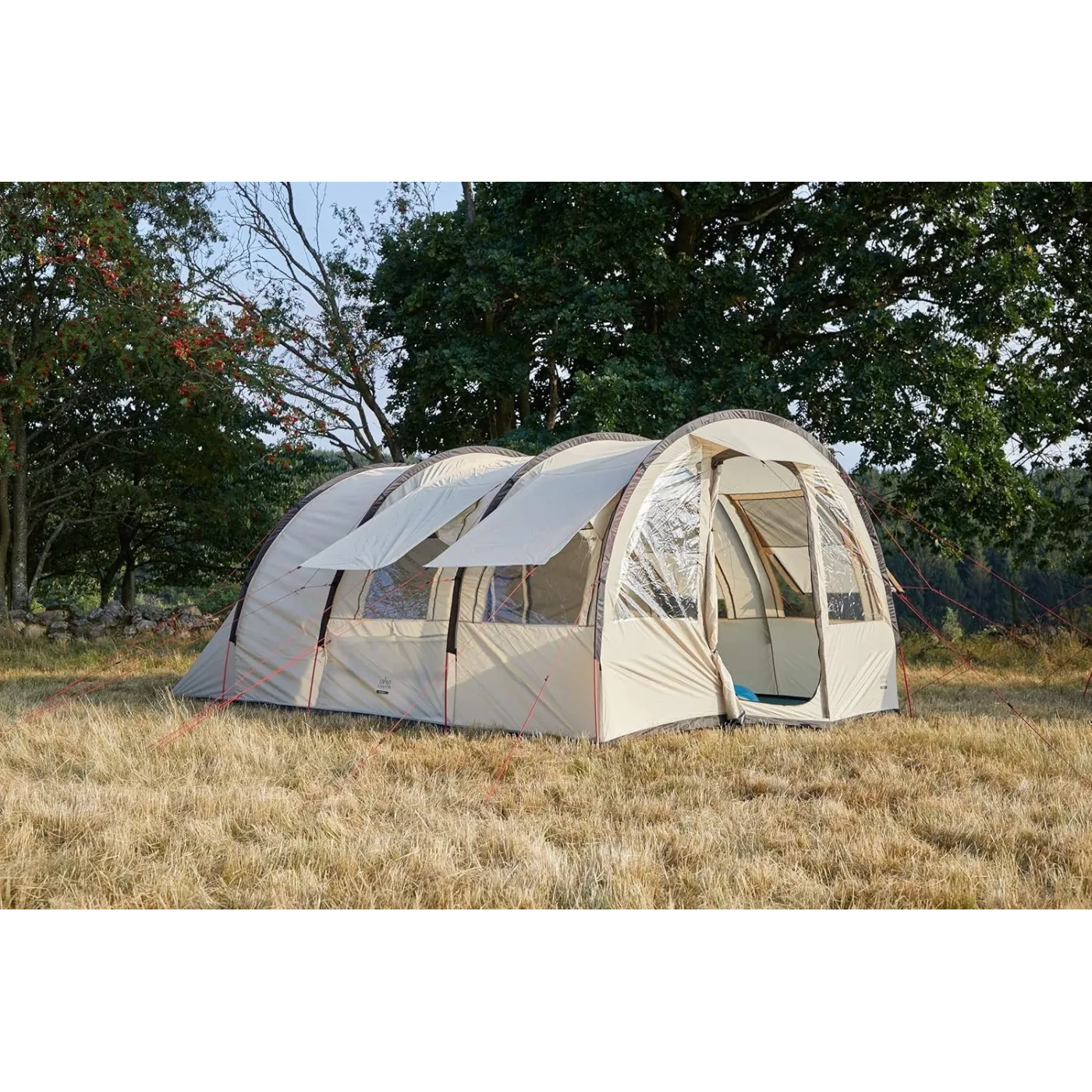 HELENA 5 to idealne rozwiązanie dla rodzin i grup, które pragną spędzić czas na łonie natury, ciesząc się jednocześnie komfortem i przestronnością. Jego tunelowa konstrukcja zapewnia nie tylko stabilność, ale i optymalne wykorzystanie powierzchni. Namiot jest wyposażony w dwie oddzielne sypialnie, z których jedna pomieści trzy osoby, a druga oferuje miejsce dla dwóch osób lub na przechowywanie sprzętu oraz bagażu. Dzięki temu każdy może znaleźć swoje własne miejsce na biwaku, co sprzyja relaksowi i prywatności.