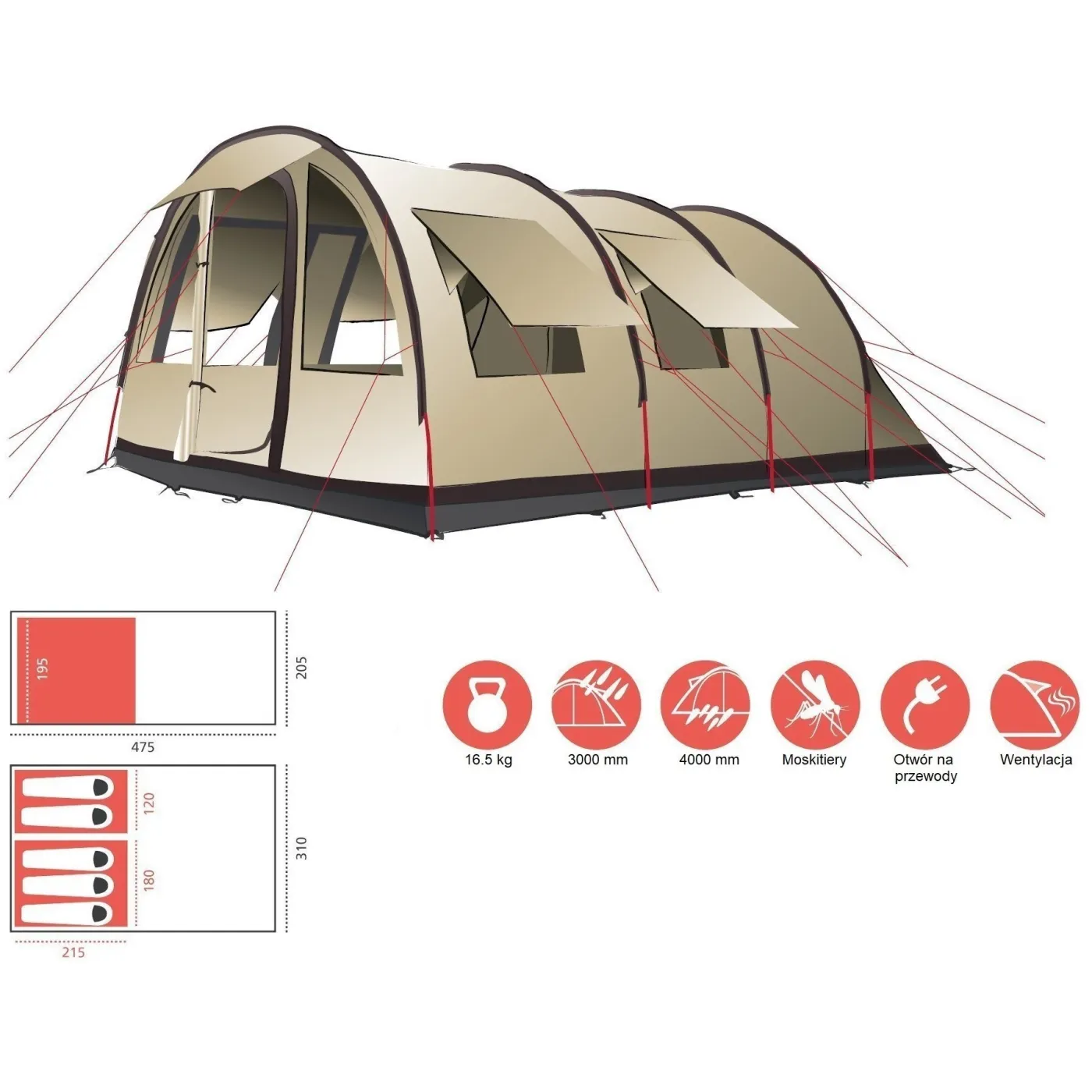 Sporym atutem jest niezwykła odporność na warunki atmosferyczne. Wodoodporność pokrycia wierzchniego 3000 mm oraz podłogi 4000 mm zapewnia, że mieszkańcy namiotu będą susi i chronieni, nawet w przypadku intensywnego deszczu. Dzięki uszczelnionym szwom oraz oddychającym materiałom, namiot staje się niezawodnym schronieniem w słoneczne i deszczowe dni.