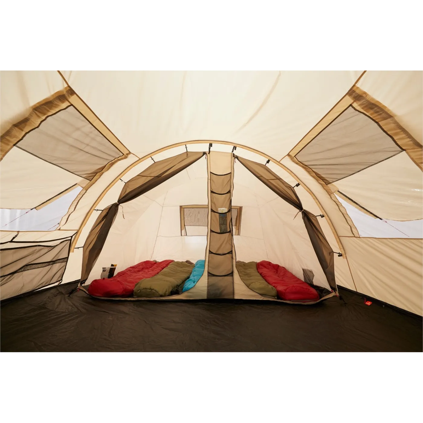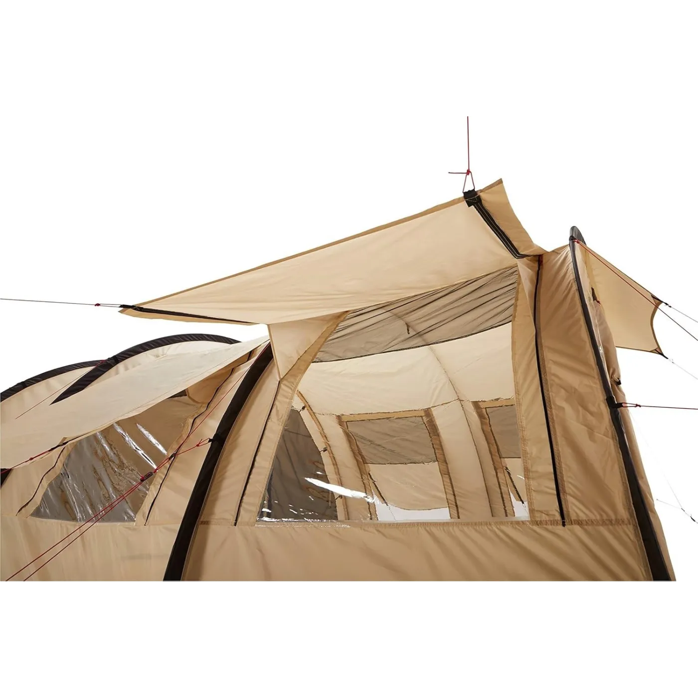 Przedsionek namiotu to prawdziwy atut – ma wysokość 2 metrów, co daje możliwość komfortowego poruszania się oraz spędzania wspólnego czasu w ciągu dnia. Idealny na rodzinne posiłki i wieczorne spotkania, przedsionek gwarantuje wystarczająco dużo miejsca na przechowywanie dodatkowego sprzętu. Duże zadaszone otwory wentylacyjne oraz zamykane okna z moskitierami dbają o odpowiednią cyrkulację powietrza, co znacząco podnosi wygodę pobytu i zapobiega nieprzyjemnym sytuacjom związanym z nadmiarem wilgoci.