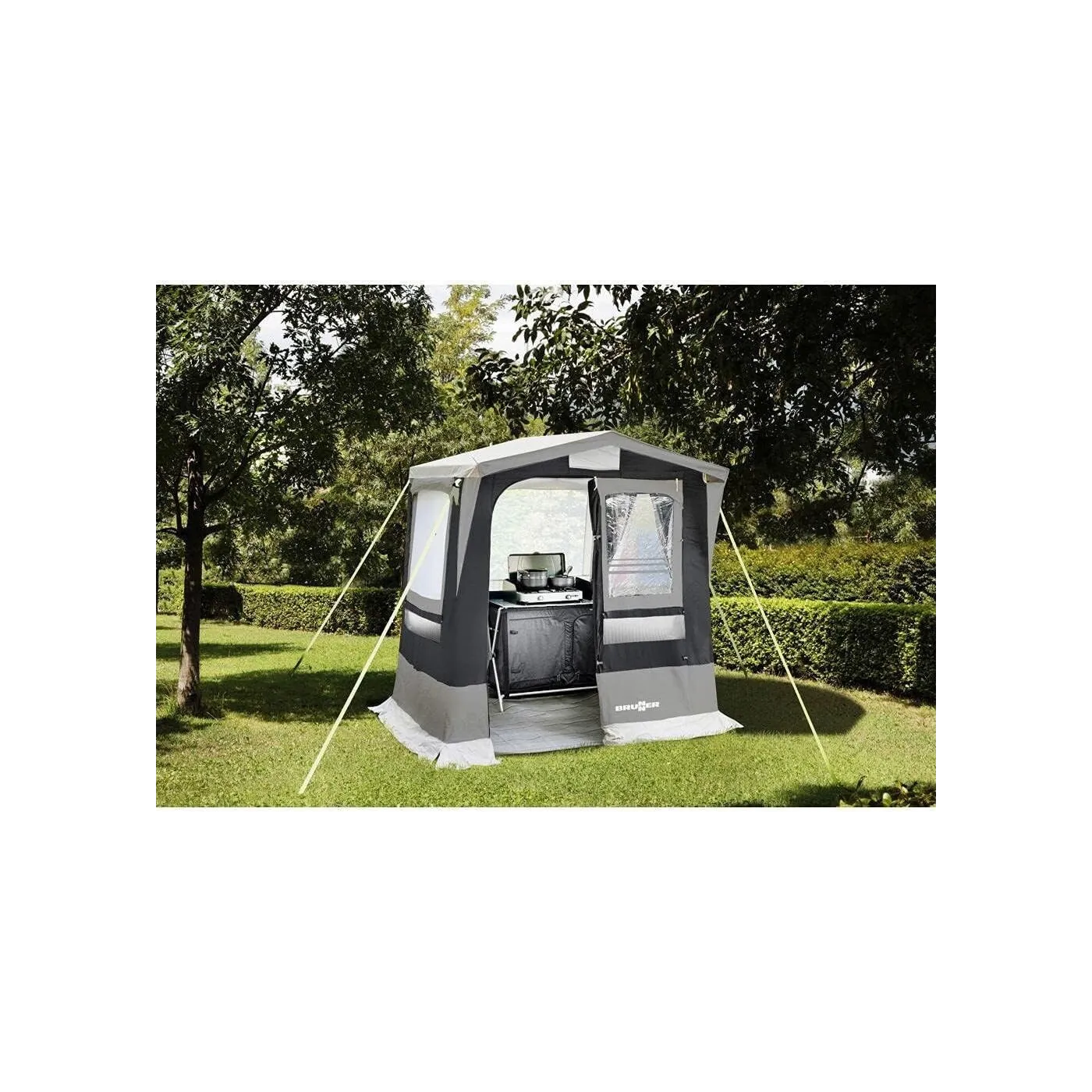🏕️ Namiot Kempingowy Kuchenny Brunner Gusto I NG to idealne rozwiązanie dla osób, które cenią sobie wygodę i funkcjonalność podczas biwakowania. Zaprojektowany z myślą o kuchni na świeżym powietrzu, doskonale sprawdzi się jako pomocniczy namiot przy przyczepie kempingowej, kamperze lub głównym namiocie. To nie tylko praktyczny schron do gotowania, ale także wygodne miejsce do przechowywania kuchennych akcesoriów i zapasów spożywczych.