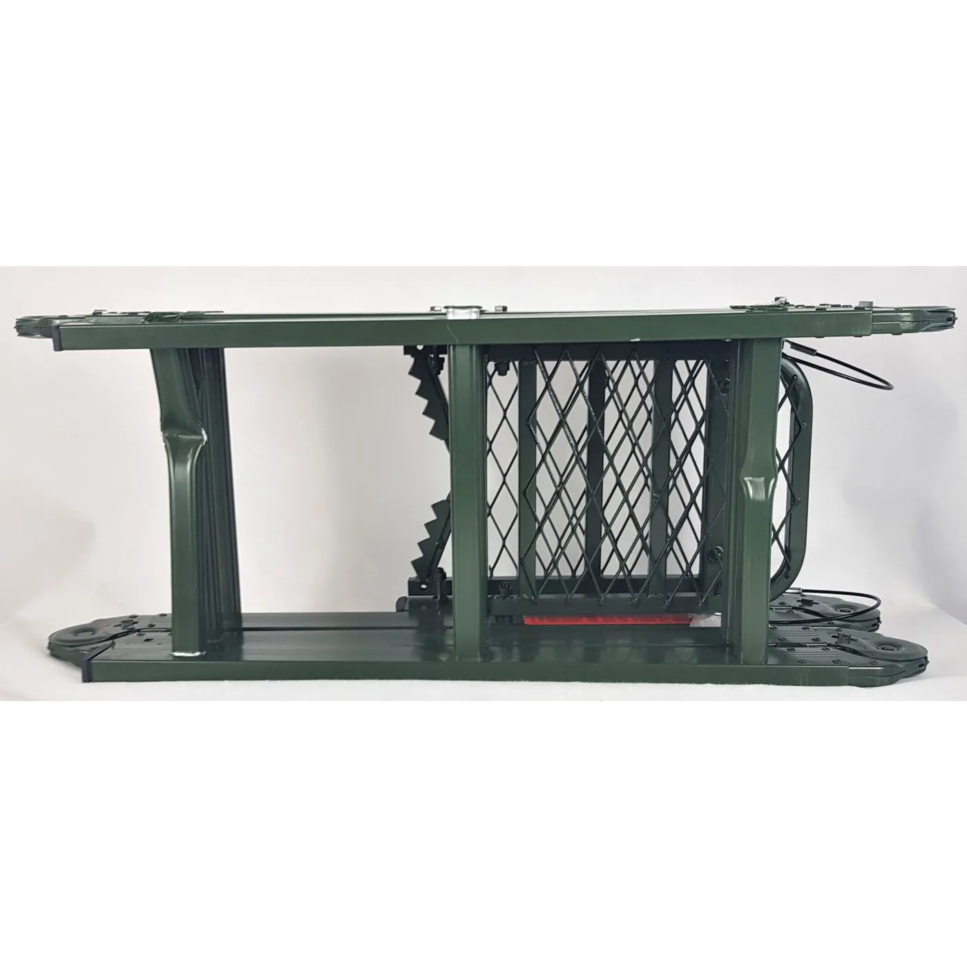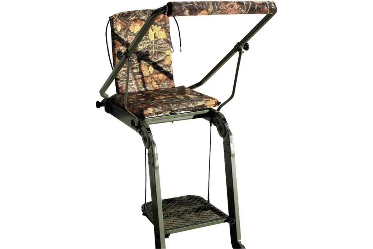 Fotel drabinowy wykonany z aluminium jest składany i lekki, dzięki czemu można go ustawić w dowolnym miejscu na łonie natury. Dobrze wyściełany pokrowiec na siedzenie w optyce kamuflażu sprawia, że długie obserwacje stają się doświadczeniem. Ten model posiada także wygodny podnóżek i antypoślizgowe szczebelki drabiny dla maksymalnego komfortu.