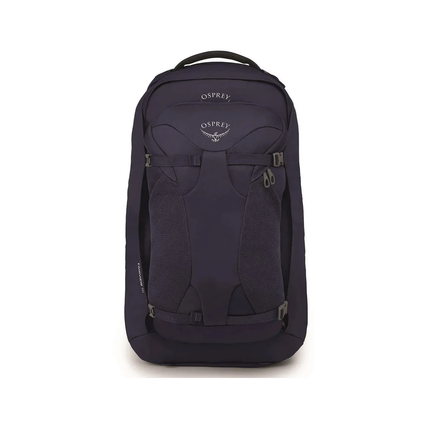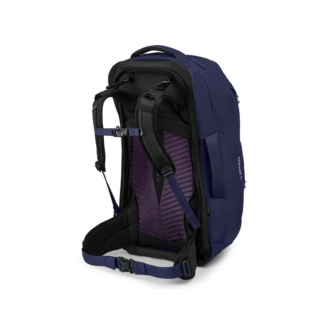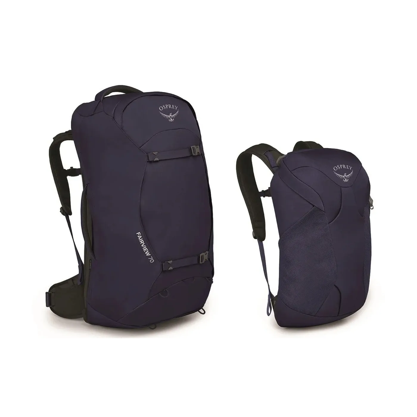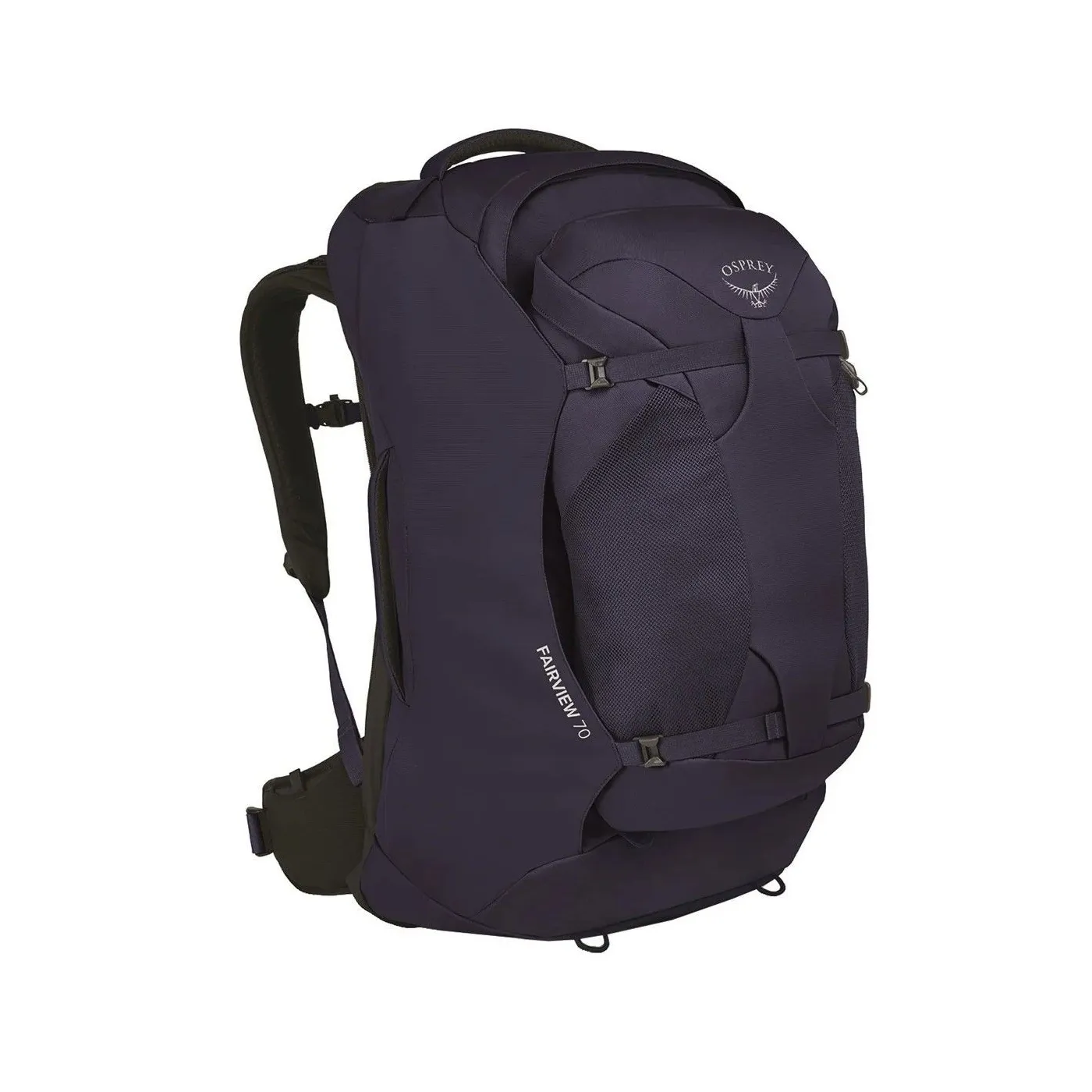 Plecak damski Osprey Fairview 70l jest wyposażony w wyrafinowany system pleców, który jest specjalnie dostosowany do kobiecej anatomii: od ergonomicznie ukształtowanego pasa biodrowego, pasów naramiennych i obszaru szyi po płytę tylną. Wyjątkowe dopasowanie ułatwia transport bagażu pomiędzy wieloma różnymi lokalizacjami. Dzięki dużemu, zamykanemu na zamek otworowi masz najlepszy dostęp do głównej komory. W komorze głównej znajdziesz także siateczkową kieszeń oraz paski kompresyjne, które utrzymują wszystko na swoim miejscu. Za pomocą zewnętrznych pasków kompresyjnych można między innymi przymocować 13-litrowy plecak dzienny typu „Zip and Clip”. Plecak można także przymocować do pasków naramiennych plecaka głównego za pomocą sprzączek i nosić w stylu kangura. W ten sposób możesz bezpiecznie transportować swoje kosztowności i dokumenty, zawsze w zasięgu ręki. W przypadku dłuższego użytkowania na zewnątrz karimatę można przymocować do dolnych pasków.