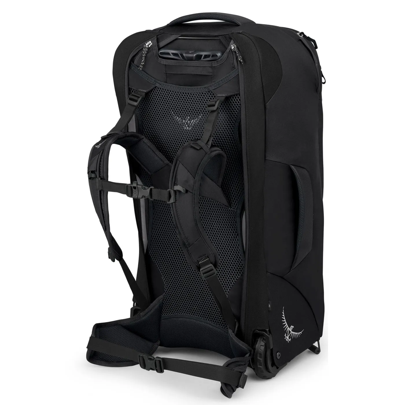 Torba na kółkach Osprey Farpoint Wheels 65 to propozycja skierowana wszelkiego rodzaju podróżników. Doskonale zabezpieczy Twój bagaż podczas podróży samolotem, a hybrydowa konstrukcja łącząca torbę z plecakiem pozwoli na jej łatwe transportowanie. Została wyposażona w autorski system nośny AirScape™. Dzięki temu torbę możesz wygodnie przenosić jako plecak. Takie rozwiązanie sprawdzi się szczególnie jeśli chcesz się przedostać pomiędzy dwoma punktami lub nawierzchnia uniemożliwia wykorzystanie kółeczek.