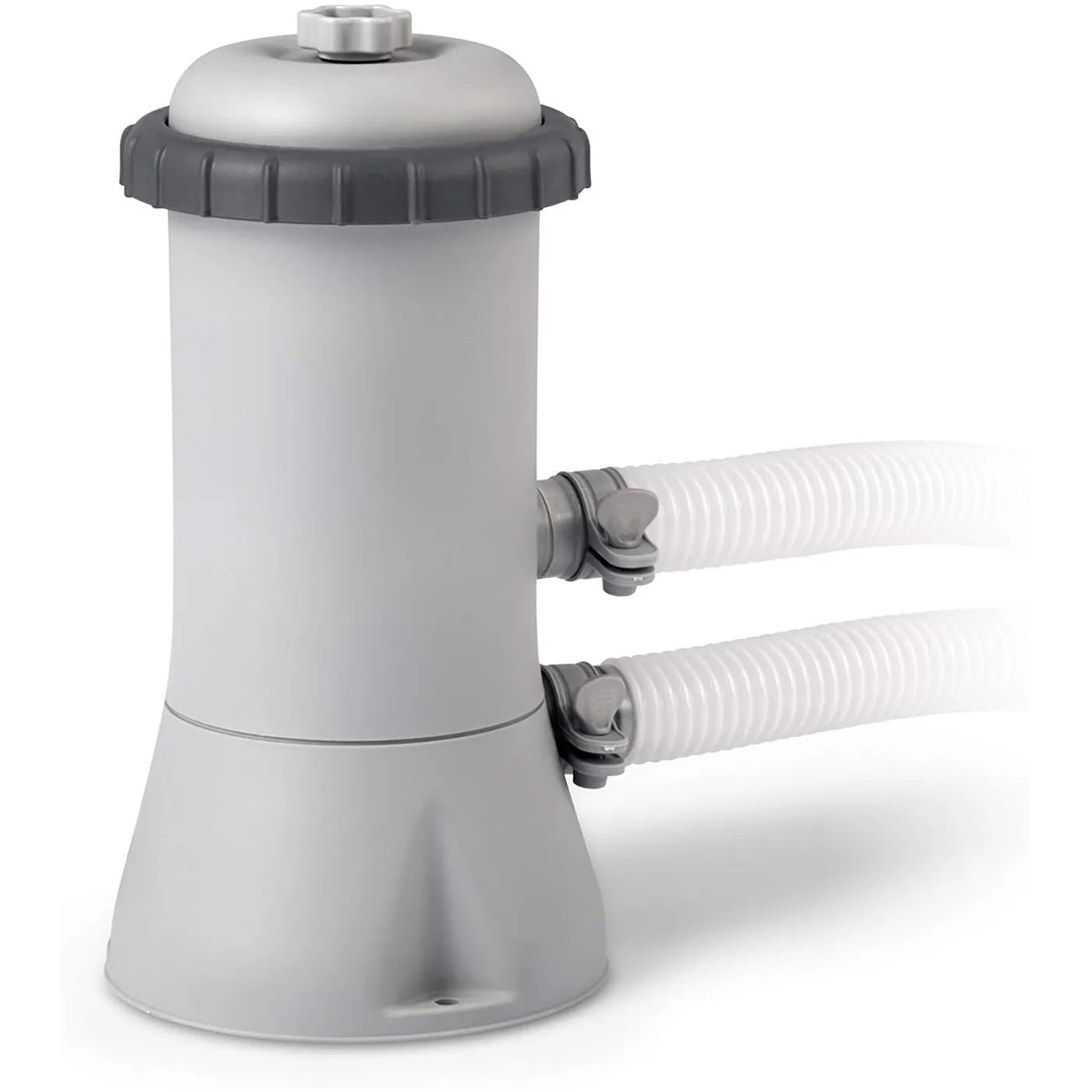 W zestawie z basenem znajduje się także pompa filtrująca kartuszowa, która pomoże w utrzymaniu czystej wody w basenie. Bardzo wydajna pompa wody pracuje z maksymalną wydajnością wynoszącą 2271 l. Dodatkową zaletą tej pompy jest zastosowanie wymiennego filtra kartuszowego. Pompa zasilana standardowym napięciem 220-240V posiada w zestawie transformator. Instalacja pompy i przygotowanie jej do pracy zajmuje kilka minut, a obsługa nie sprawia kłopotów.