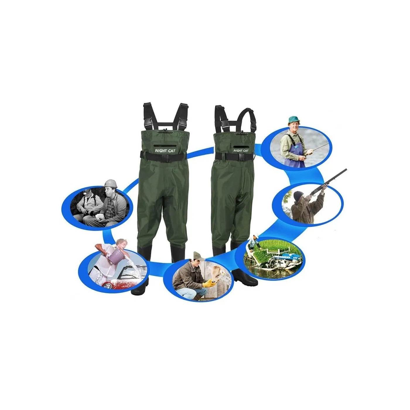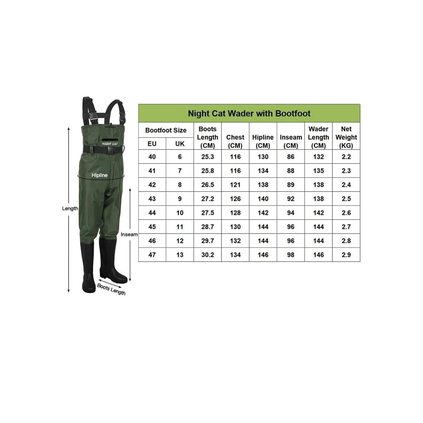 Nowoczesna technologia zgrzewania butów z spodniami zapobiega przeciekom, a podwójne znaczki na wewnętrznym szwie dodatkowo zabezpieczają przed wyciekami. Wytrzymałe buty z antypoślizgową podeszwą zapewniają bezpieczeństwo podczas poruszania się w wodzie. Night Cat stworzył wodery, które łączą funkcjonalność, wygodę i trwałość, będąc niezbędnym wyposażeniem każdego wędkarza.