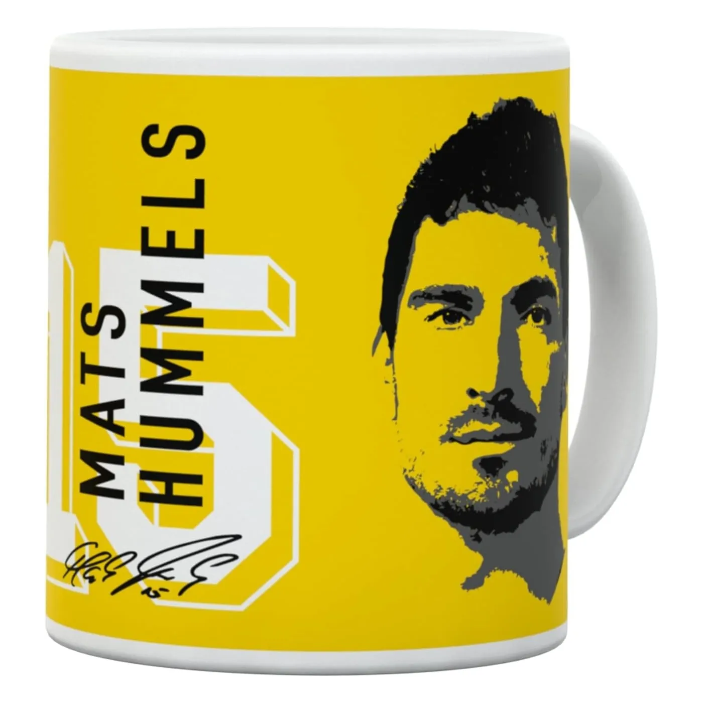 Kubek z logiem Borussii Dortmund i wizerunkiem Matsa Hummelsa z numerem 15 to oficjalny artykuł dedykowany dla fanów BVB.