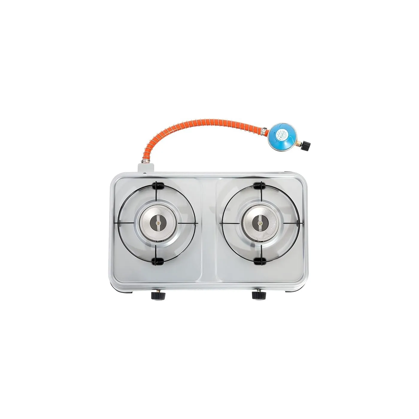 Dwa palniki pozwolą na szybsze przygotowywanie potraw. Stabilna konstrukcja osadzona jest na szeroko rozstawionych nóżkach z gumowymi podkładkami, które dbają o to, by kuchenka nie przewróciła się w trakcie użytkowania.