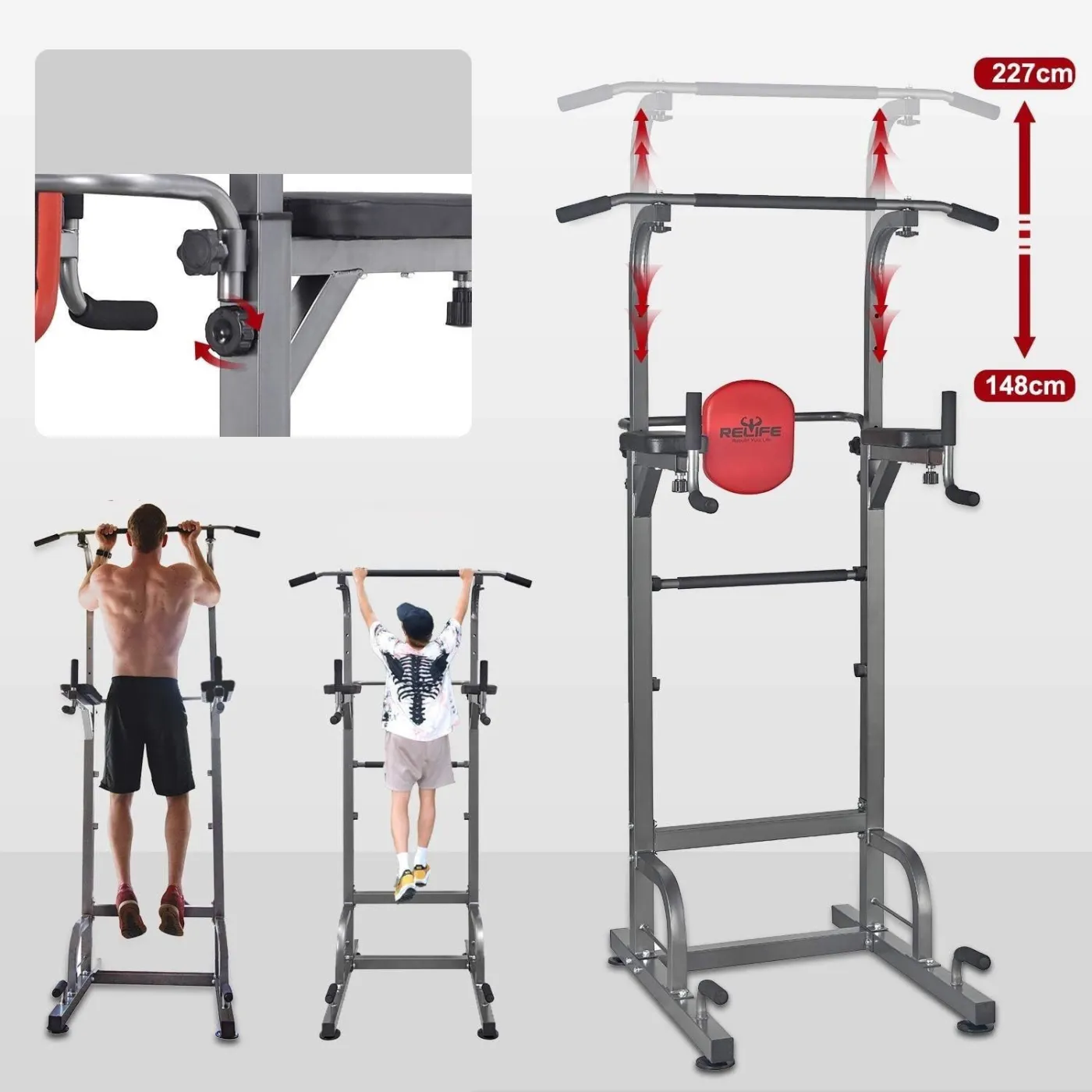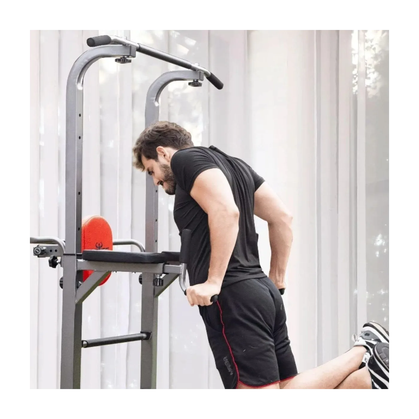 Wytrzymała stal i naukowa struktura zapewniają dobre wsparcie, a maksymalna waga wynosi 150 kg, co spełnia wymagania codziennego treningu. Cztery przyssawki, które służą jako nóżki, mocno trzymają się podłoża, a przyssawki utrzymują tę wieżę na miejscu, dzięki czemu można bezpiecznie trenować. Ponadto, to urządzenie do treningu siłowego pozwala na podciąganie się za pomocą różnych uchwytów, dipów i ruchów.