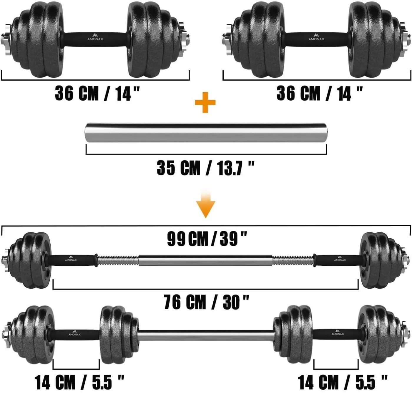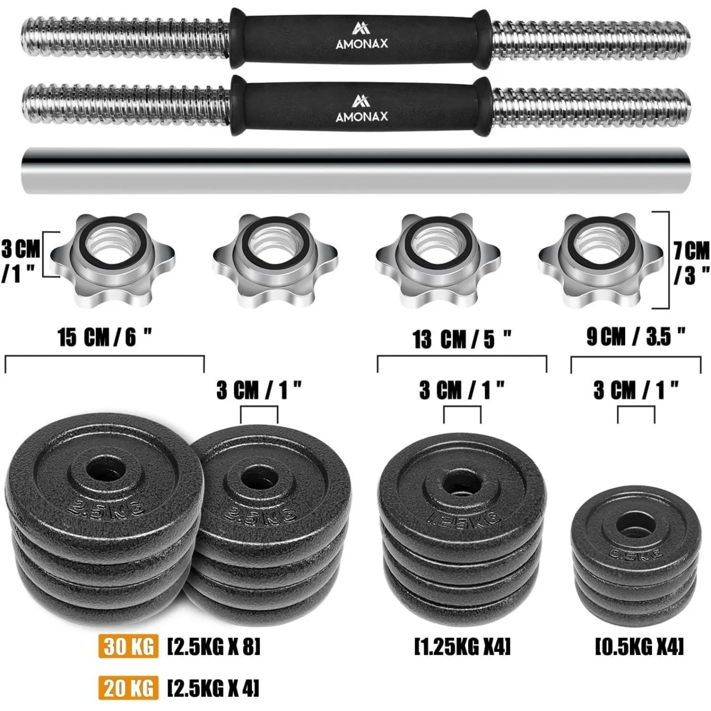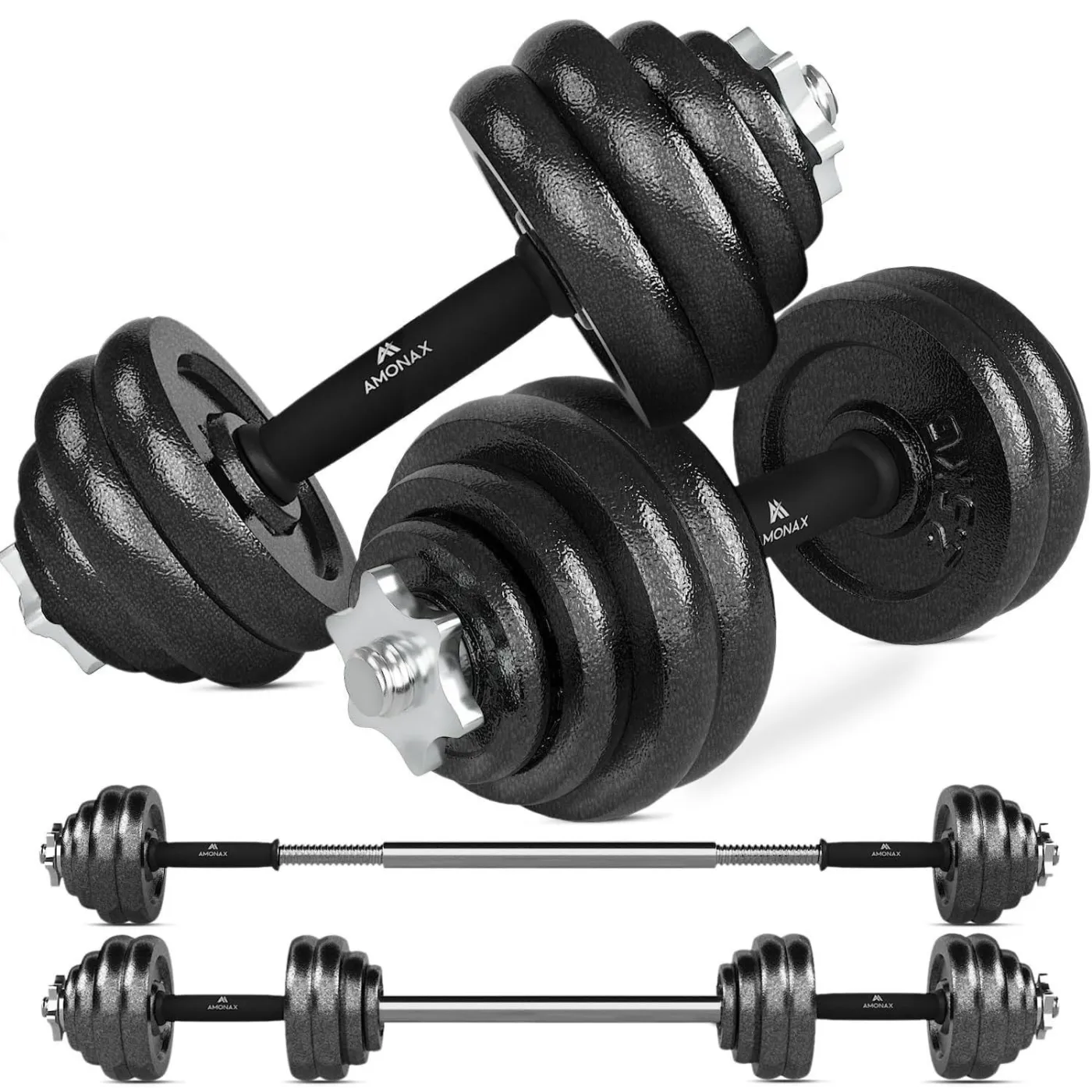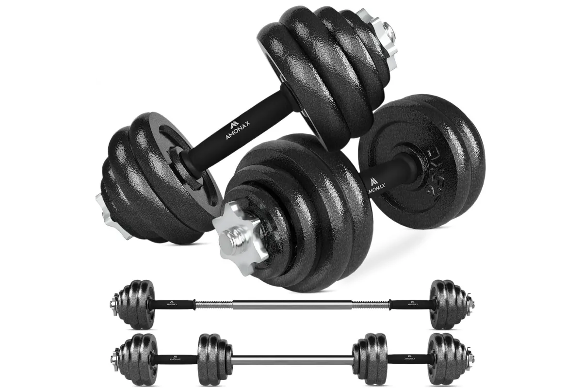 Amonax to regulowane hantle z żeliwa z gumowym uchwytem, które pozwalają na komfortowe ćwiczenia w domu. Ten model, dzięki możliwości indywidualnego dopasowania wagi ciężarów pozwala na wykonywanie wielu wariantów treningów na różne partie ciała, zarówno dla kobiet jak i mężczyzn.