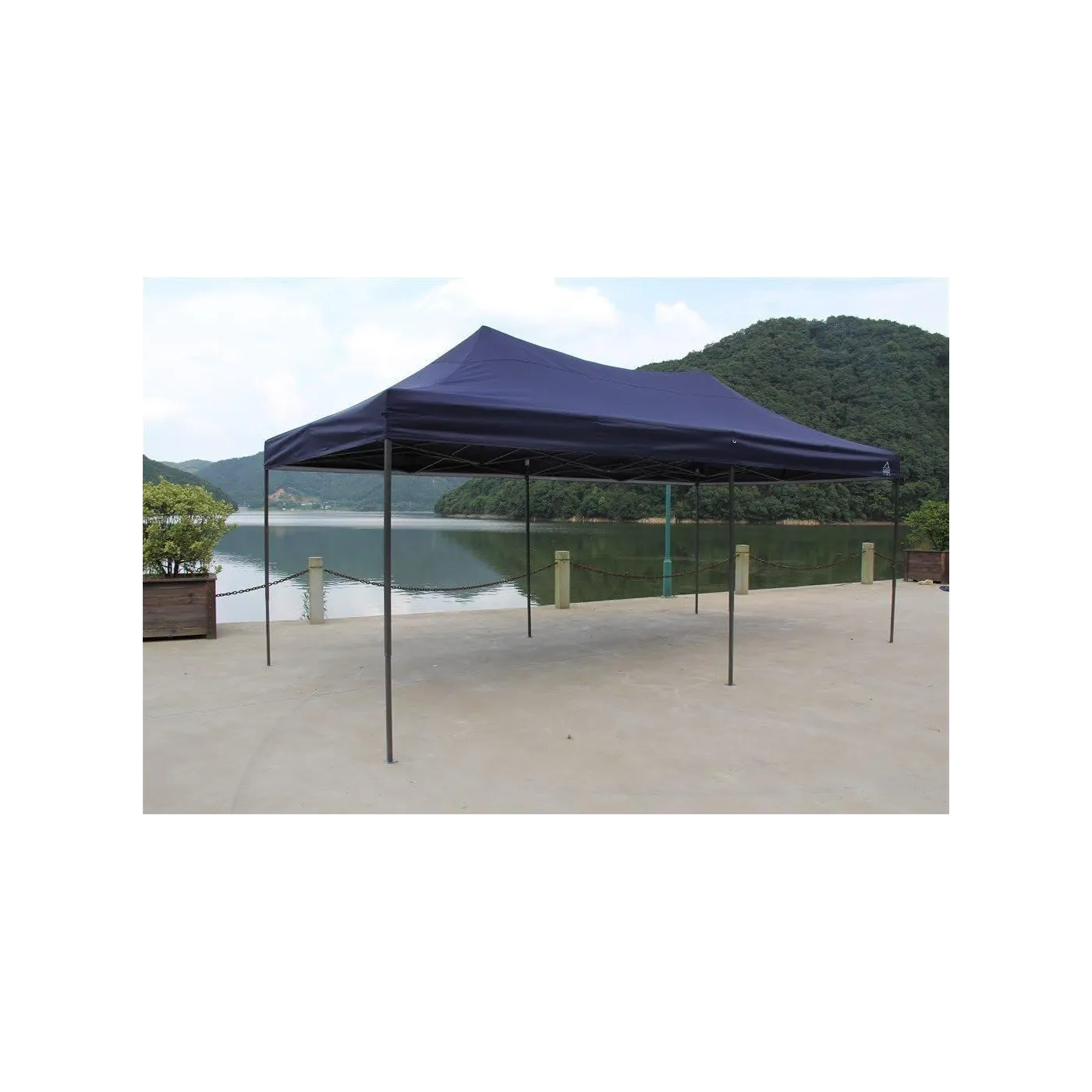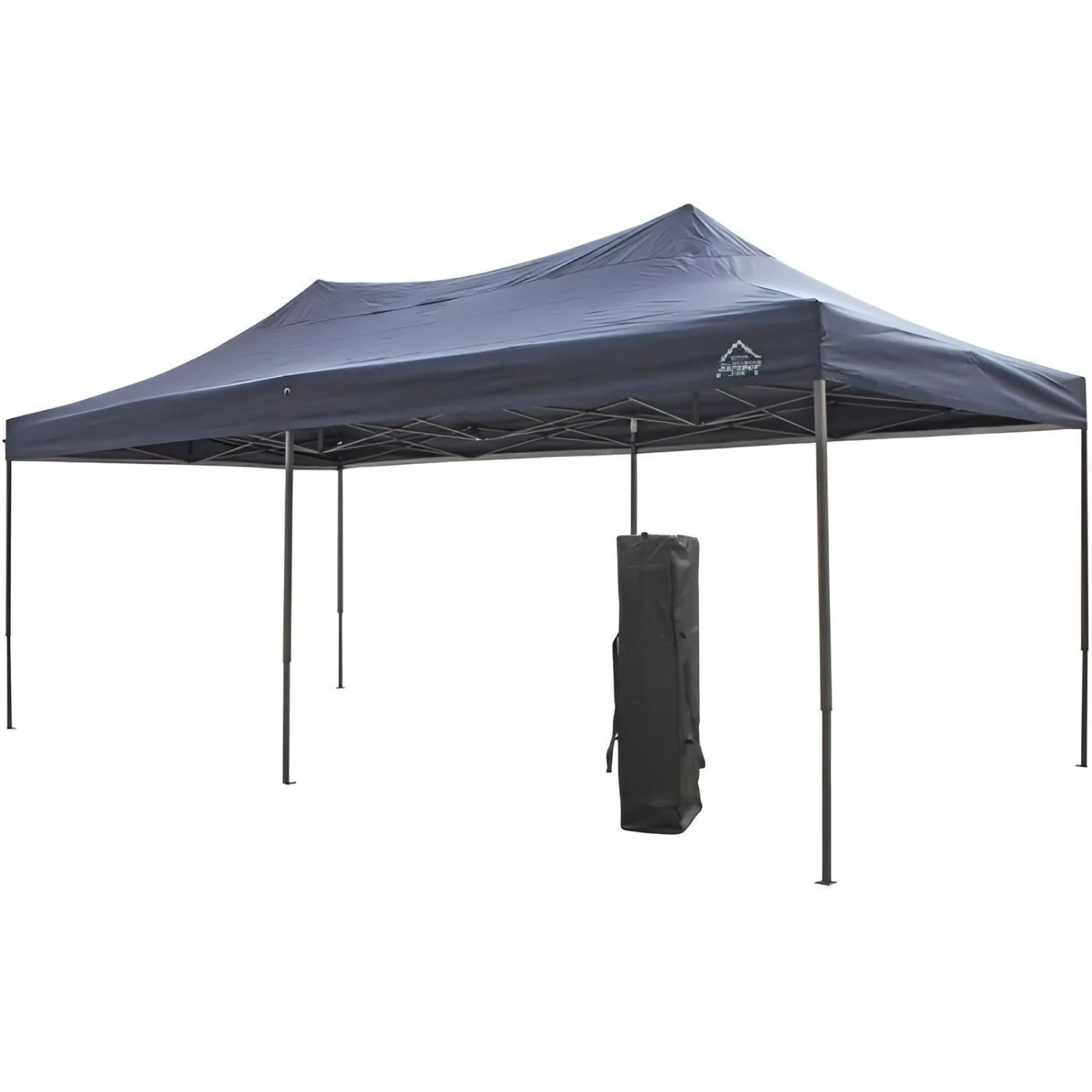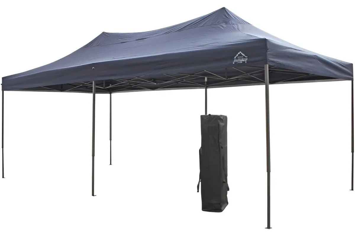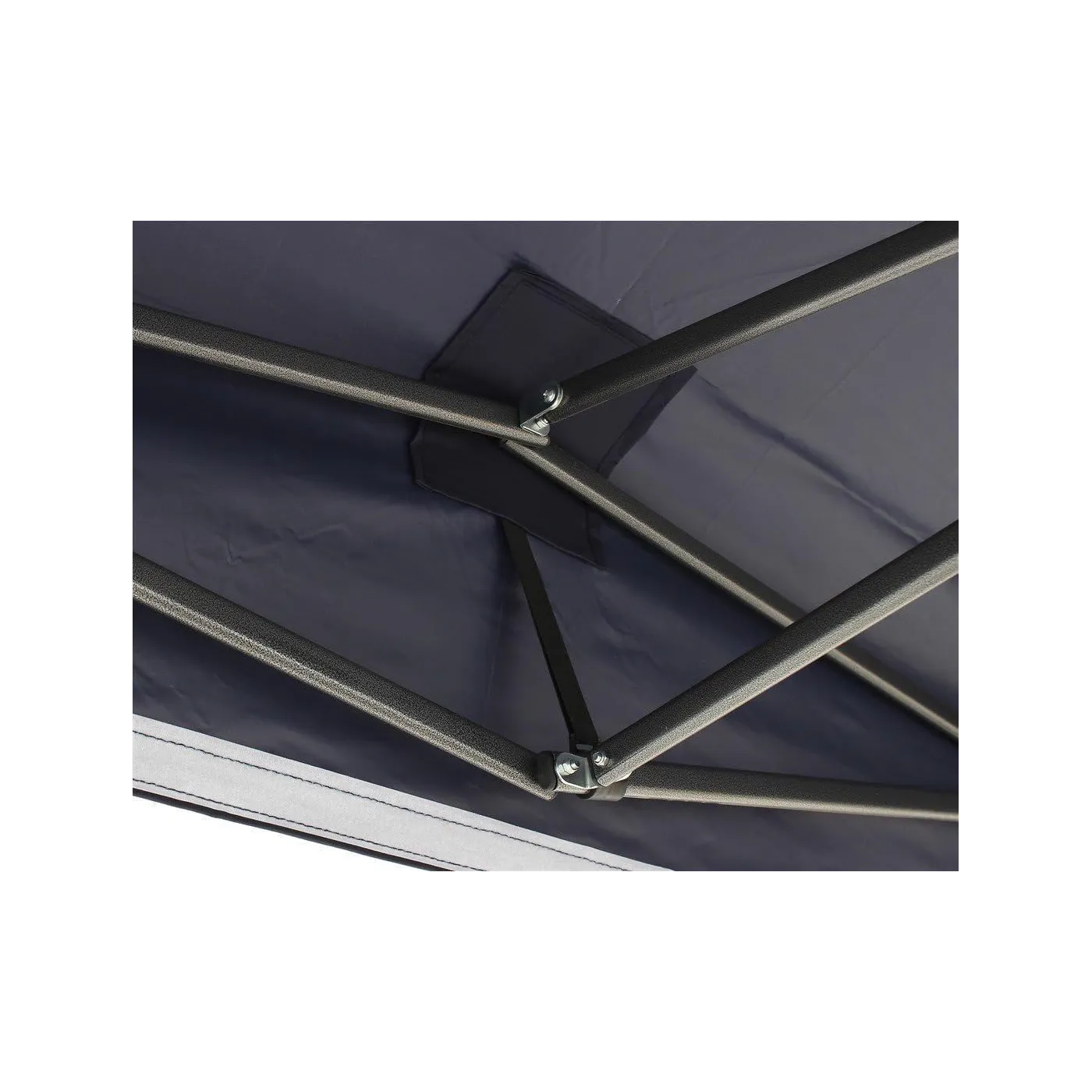 Składany pawilon ogrodowy All Seasons jest w pełni wodoodporny. Czarna matowa rama wykonana ze stali malowanej proszkowo jest nierdzewna, a wiele wsporników zapewnia dodatkową stabilność z trzema różnymi ustawieniami wysokości. Montaż pawilonu jest bardzo prosty, żadne pręty nie zatrzaskują się na miejscu, wystarczy wyciągnąć nogi, przykryć ramę pokrywą (tylko za pierwszym razem można zamontować sufit do przyszłych zastosowań), ustawić nogi na żądaną wysokość i mocno zacisnąć. Jest to bardzo proste i zajmuje tylko kilka minut, aby w pełni zbudować altankę. Ten model jest idealny do stosowania na trawnikach, tarasach, czy nawet piasku.