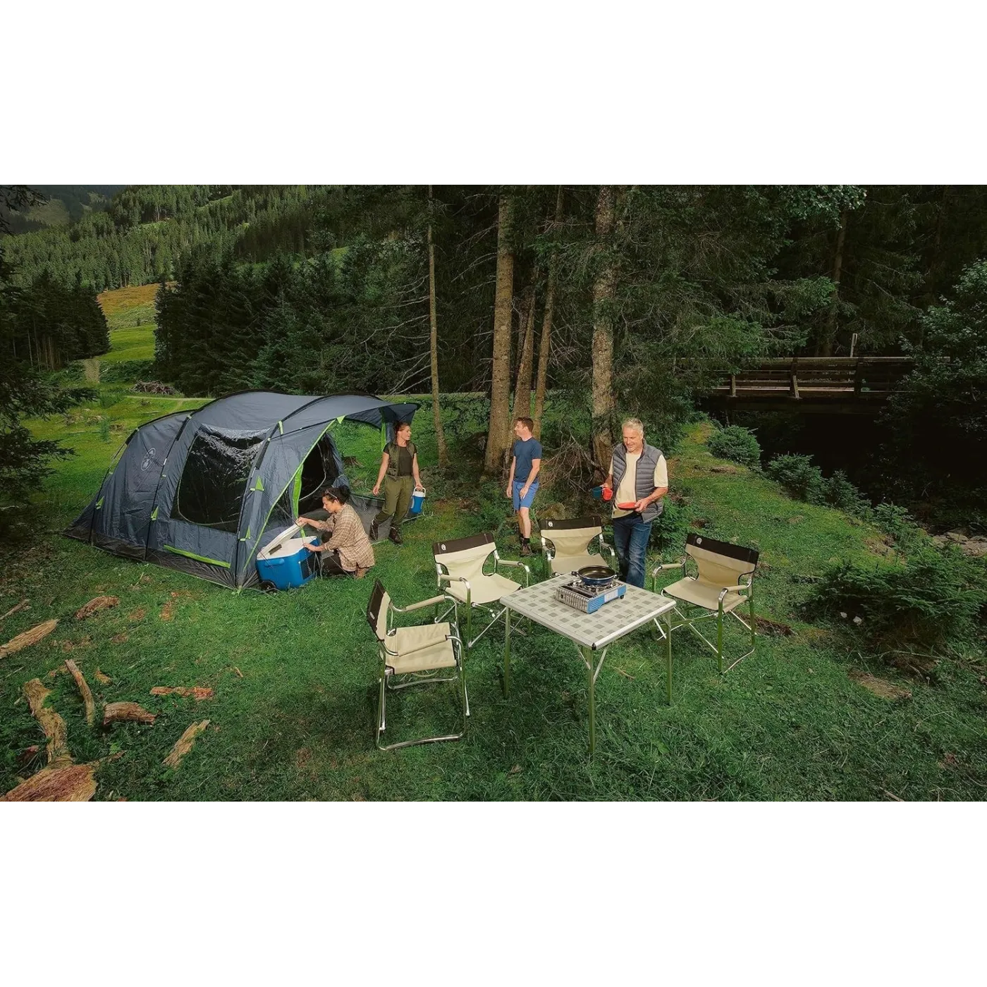 Namiot Coleman Vail™ dla czteroosobowej rodziny lub grupy przyjaciół planujących kempingowy weekend. Dzięki niskiej wadze i łatwemu rozłożeniu jest to doskonały wybór dla osób ceniących mobilność i funkcjonalność.