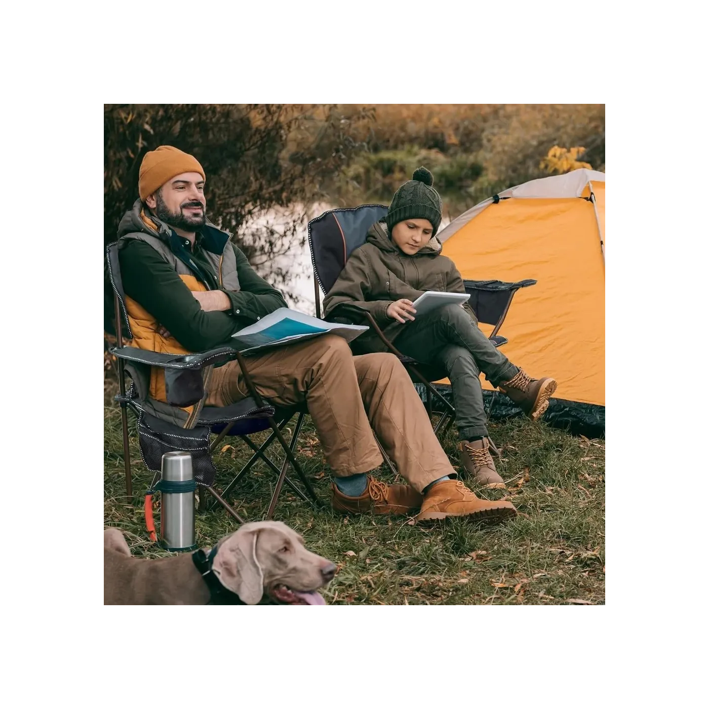 Wykonane z trwałej tkaniny Oxford 600D, zapewnia komfort nawet podczas długotrwałego użytkowania. Dzięki solidnej ramie i antypoślizgowym nóżkom, krzesło wytrzymuje obciążenie do 175 kg, gwarantując stabilne siedzenie na każdej powierzchni. Dodatkowe kieszenie i torba termoizolacyjna sprawiają, że masz wszystkie niezbędne rzeczy zawsze przy sobie, a ergonomiczny design krzesła zapewnia wygodę i redukuje zmęczenie, pozwalając, cieszyć się relaksem. Składane krzesło jest praktyczne i łatwe w montażu, dzięki czemu możesz zabrać je ze sobą wszędzie, na biwak, wędrówkę lub piknik.