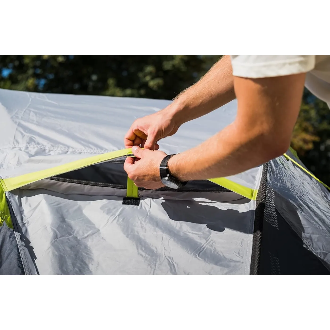 Dzięki technologii Fire Retardant oraz ochronie UV i UVGuard możesz cieszyć się wypoczynkiem bez obaw o szkodliwe promieniowanie słoneczne. WeatherTec zapewnia nieprzemakalność namiotu podczas deszczu, a wentylacja oraz ochrona przed wiatrem zapewniają komfort nawet podczas niekorzystnych warunków atmosferycznych. Klejone szwy gwarantują szczelność i ochronę przed wilgocią, a wytrzymały materiał namiotu sprawia, że możesz cieszyć się wypoczynkiem na świeżym powietrzu niezależnie od warunków pogodowych. Nie czekaj, zaplanuj swoją przygodę już teraz.