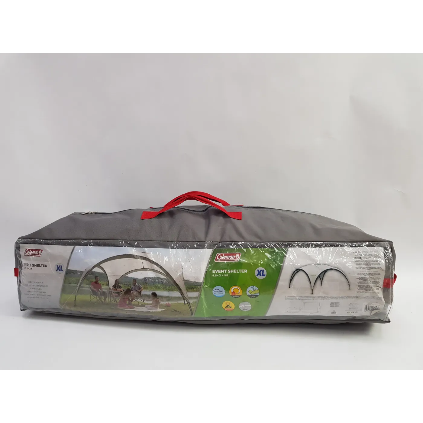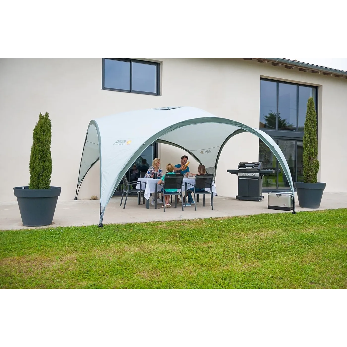 Coleman Event Shelter XL to nowocześnie wyglądający namiot do ogrodu. Świetnie nada się na grilla lub imprezę rodzinną, czy z grupą znajomych. Specjalny kształt w połączeniu ze solidnym stelażem, wykonanym ze stalowych rurek, zapewnia stabilną całość.