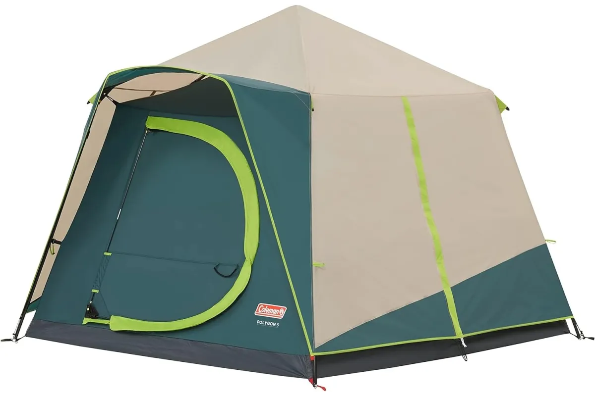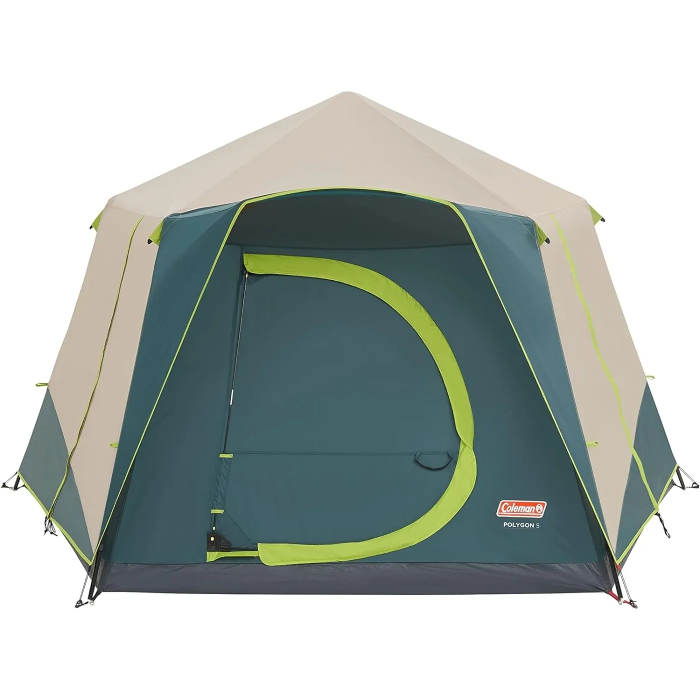 Coleman Polygon 5 to namiot turystyczny dla 5 osób, który doskonale sprawdzi się np. podczas wszelkich rodzinnych podróży wakacyjnych. Posiada przestronną konstrukcję z pięciokątną podstawą, która przypomina nieco pojedynczy duży pokój z oknami zapewniającymi pełny widok na otoczenie.