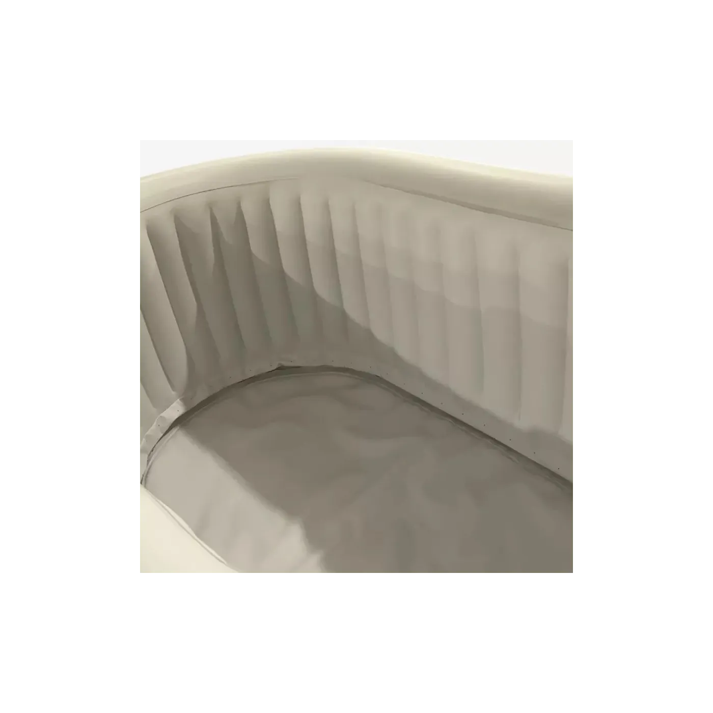 Nadmuchiwane ściany zbiornika są wykonane przez połączenie siatki poliestrowej między dwiema warstwami laminowanego PVC, co daje w sumie trzy warstwy wzmocnionego materiału. Ta specjalna kombinacja nie tylko zwiększa odporność i trwałość nadmuchiwanej wanny z hydromasażem, nie rezygnując z komfortu gwarantowanego przez miękką warstwę pianki EVA. Specjalny otwór wentylacyjny znajdujący się na dnie basenu zapobiega również niepożądanemu pęcznieniu, aby zachować dno basenu, a dzięki praktycznym uchwytom można ustawić basen przed napełnieniem na korzyść słońca lub cienia.