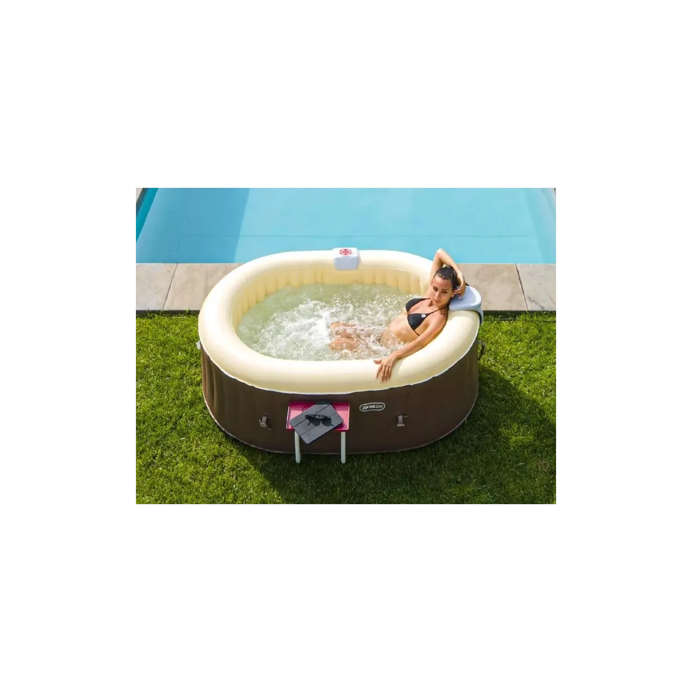 Nadmuchiwane spa EasyZone to bardzo duża owalna wanna z hydromasażem, praktyczna i funkcjonalna. Poprzez panel sterowania można nie tylko napompować i opróżnić basen w kilka minut dzięki zintegrowanej pompie wewnętrznej, ale także zarządzać różnymi funkcjami oraz dostosować poziom temperatury do swoich potrzeb. W ten sposób można korzystać z basenu o każdej porze roku. Podczas długich, letnich dni lub ogrzać się wieczorem w chłodne miesiące dzięki funkcji grzania, która może podnieść temperaturę wody nawet do 40°C.