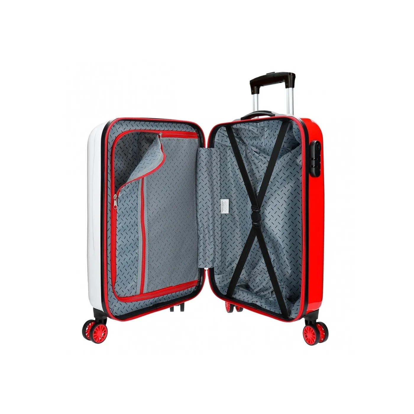Walizka zrobiona została z wytrzymałego, sztywnego i lekkiego materiału ABS. Praktyczne wnętrze posiada dwie przegródki, kieszeń na zamek oraz zapinaną gumkę. Cztery podwójne, wielokierunkowe koła skrętne zapewniają wygodną jazdę, płynne toczenie i łatwe manewrowanie. Zamknięcie z boku na kod zapewnia bezpieczną podróż i ochronę rzeczy osobistych.
