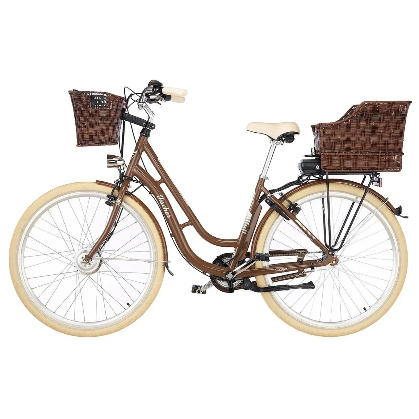 Rower ER1804 Fischer to piękny klasyk z dużymi koszami na żywiołową wyprawę na zakupy.