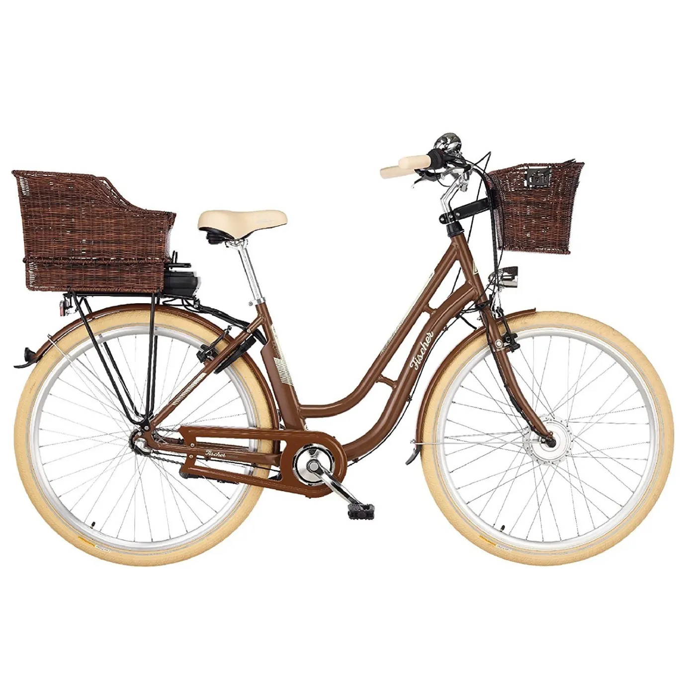 Rower ER1804 Fischer to piękny klasyk z dużymi koszami na żywiołową wyprawę na zakupy.