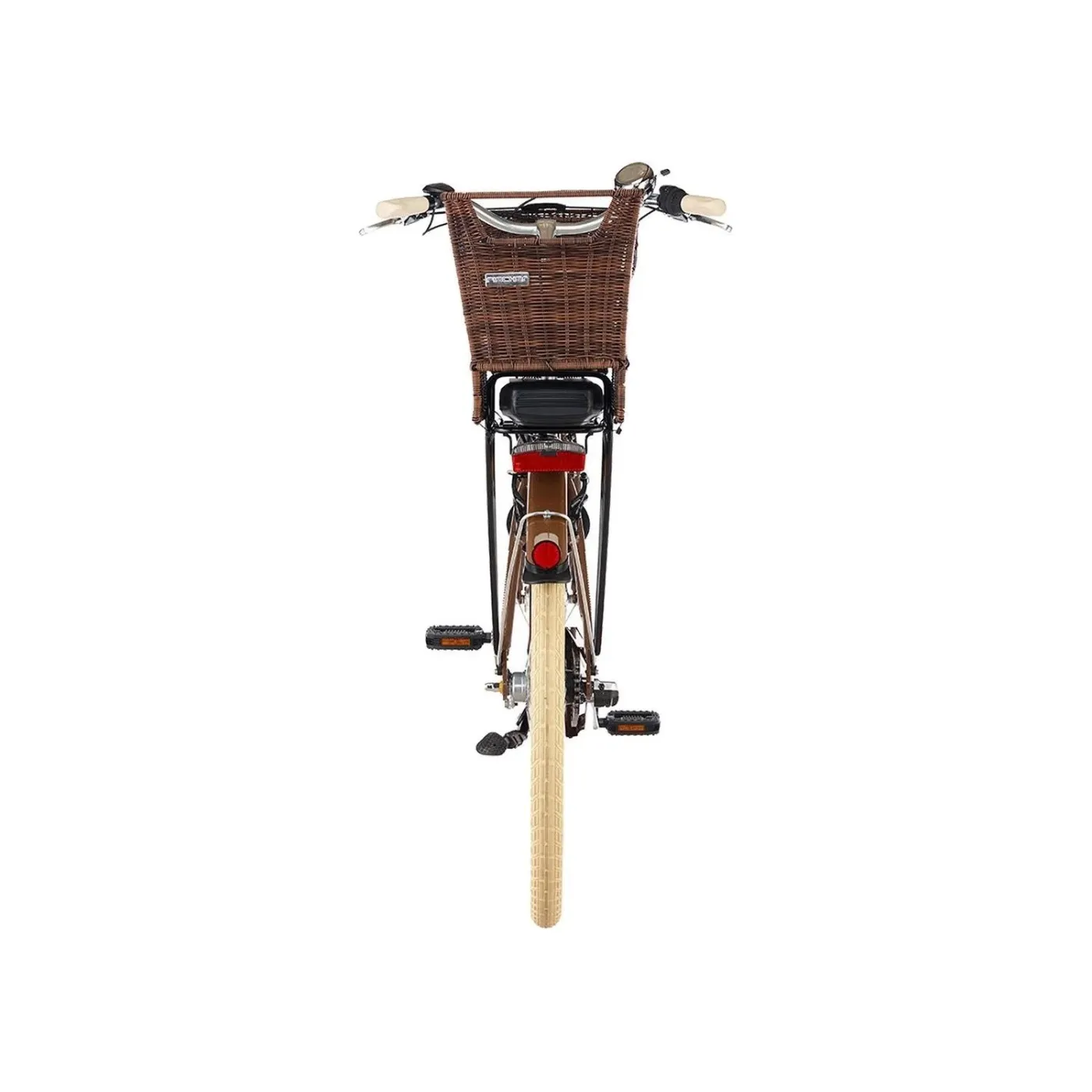 Wyjątkową cechą roweru retro Fischer jest akumulator przykryty praktycznym koszem, a kompaktowy przedni silnik jest prawie niewidoczny. Pozycja siedząca jest przyjemnie wyprostowana i zapewnia duży komfort dzięki miękkiemu żelowemu siodełku i zakrzywionej kierownicy. Piasta trzybiegowa i hamulec V-brake to klasyczne i sprawdzone rozwiązanie. Nie zabrakło również udogodnień, takich jak stałe światło LED, osłona łańcucha oraz stopka.