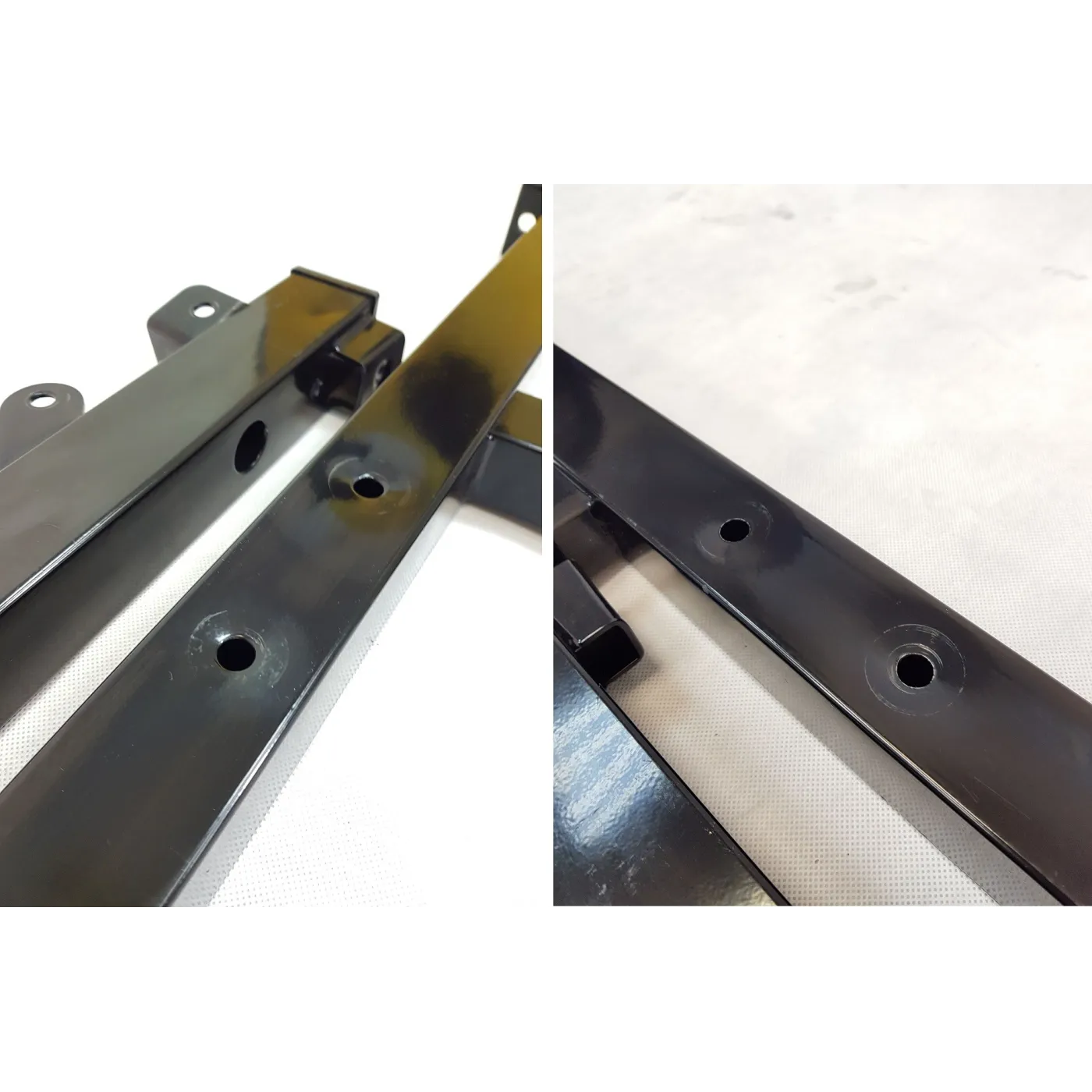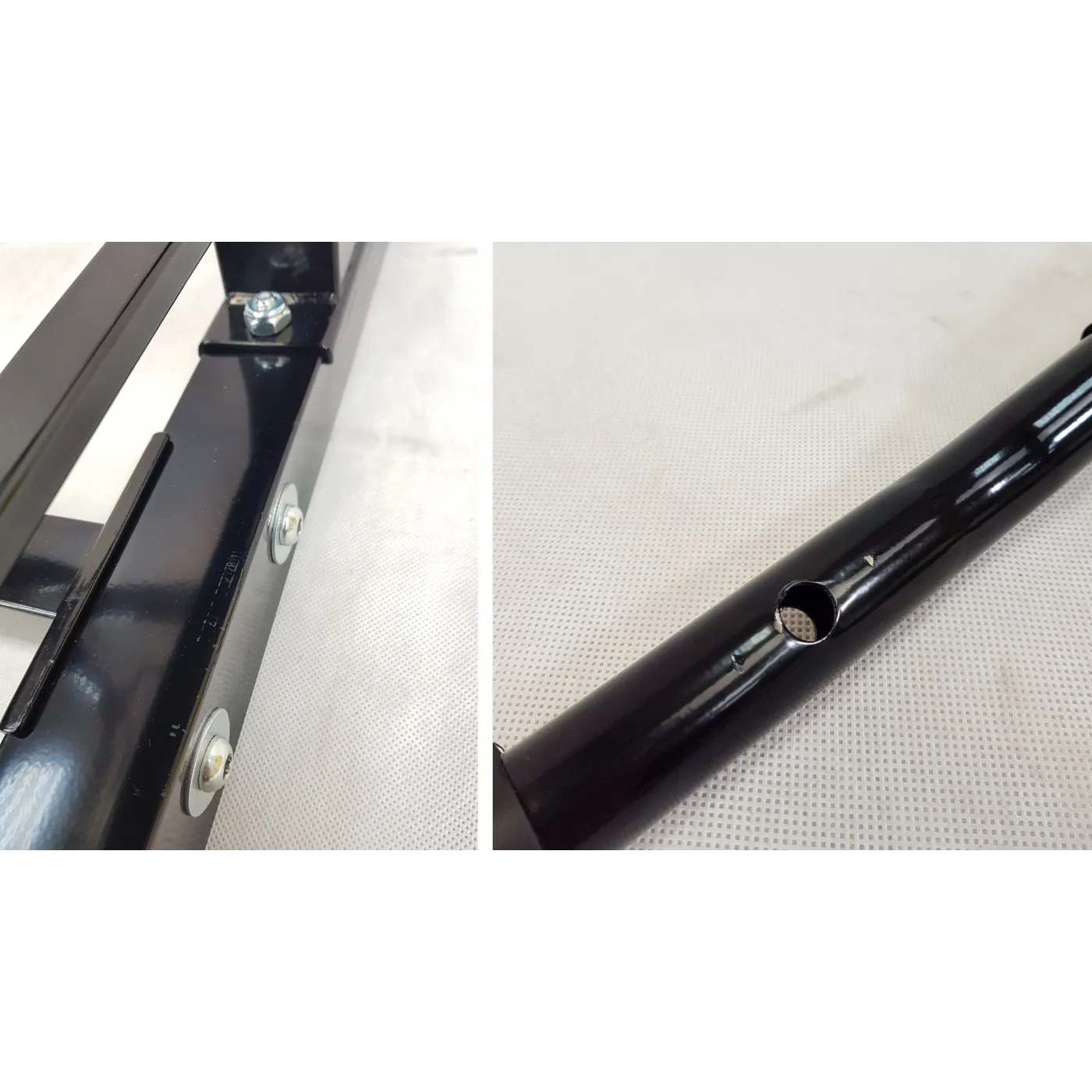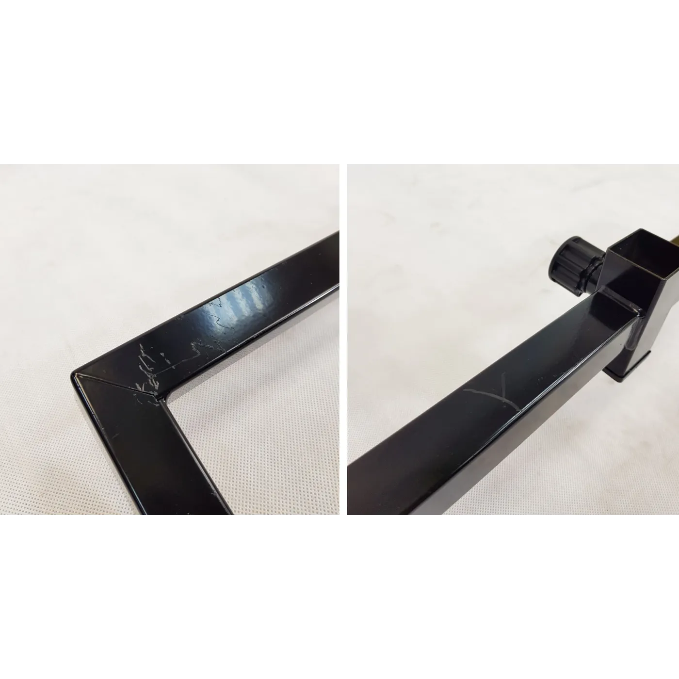 - Rysy na elementach metalowych, lekkie otarcia na gąbkach ochronnych rączek oraz wgniecenia na jednej z podpórek;