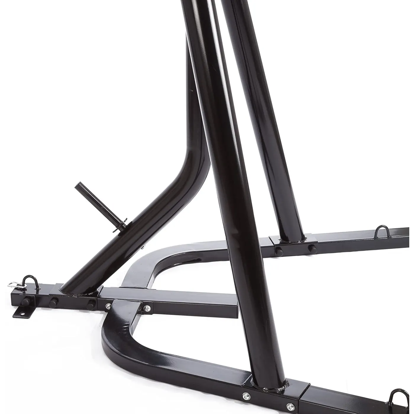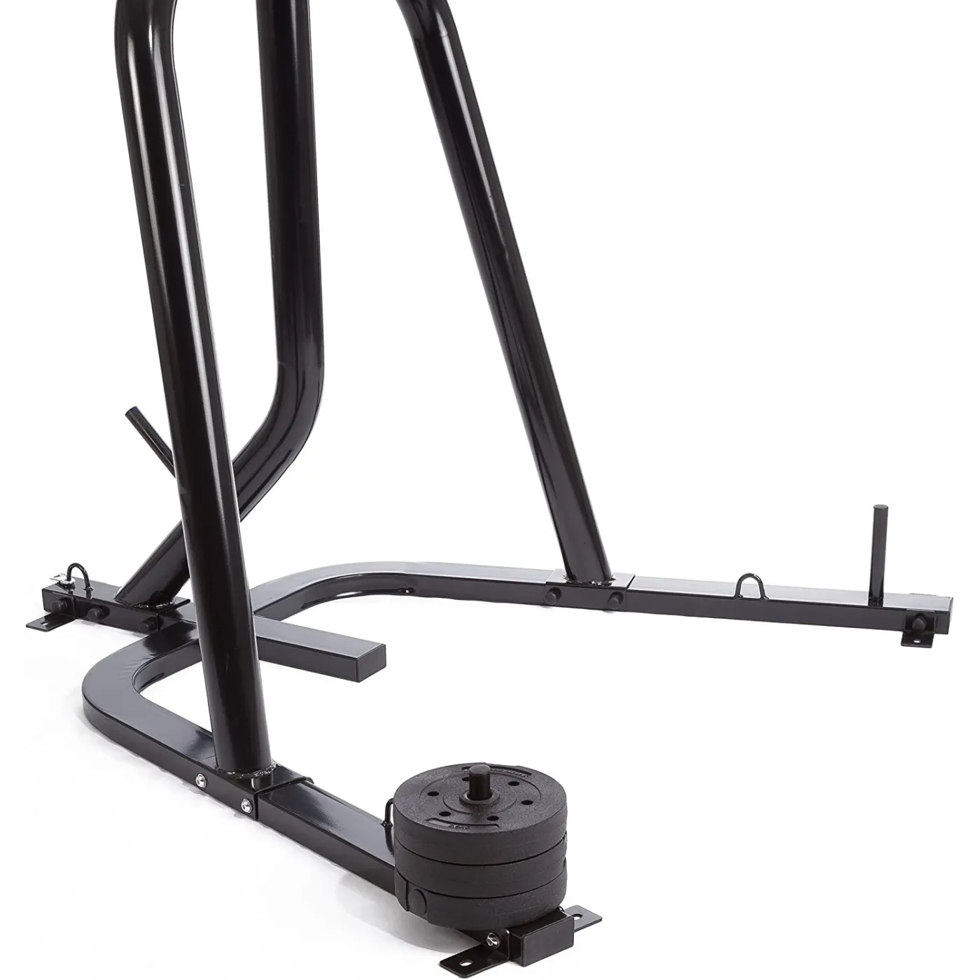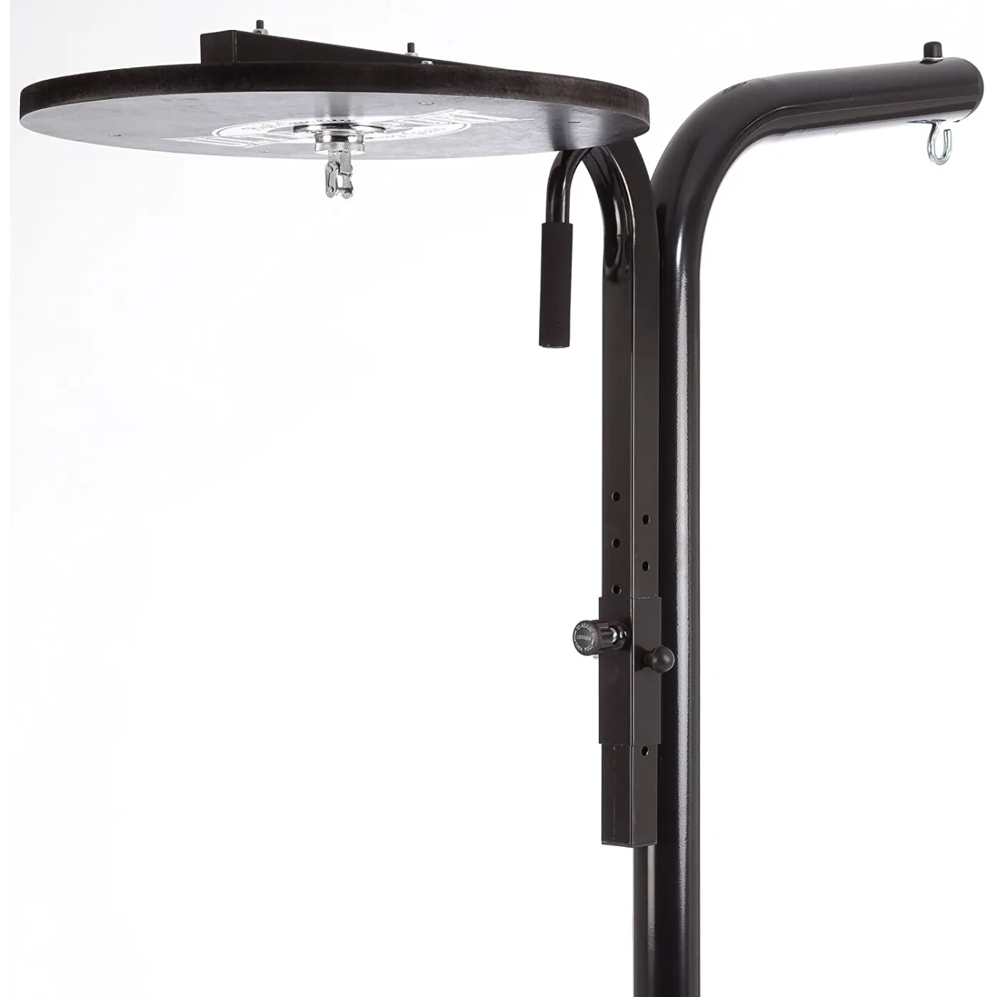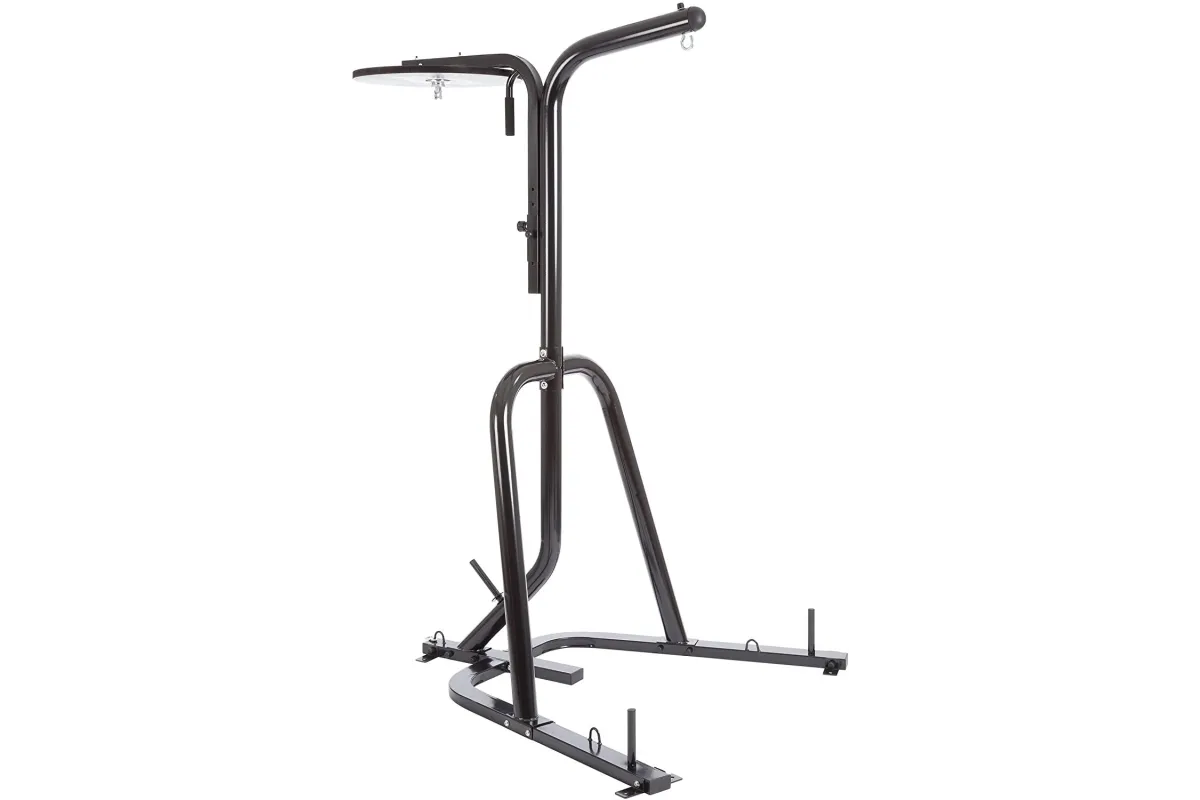 Stojak bokserski jest świetną alternatywą dla mocowań sufitowych i ściennych. Posiada stabilną podporę oraz możliwe dodatkowe zakotwiczenie w ziemi. Platforma do worka jest regulowana na 6 różnych wysokościach począwszy od 155 cm do aż 185 cm.