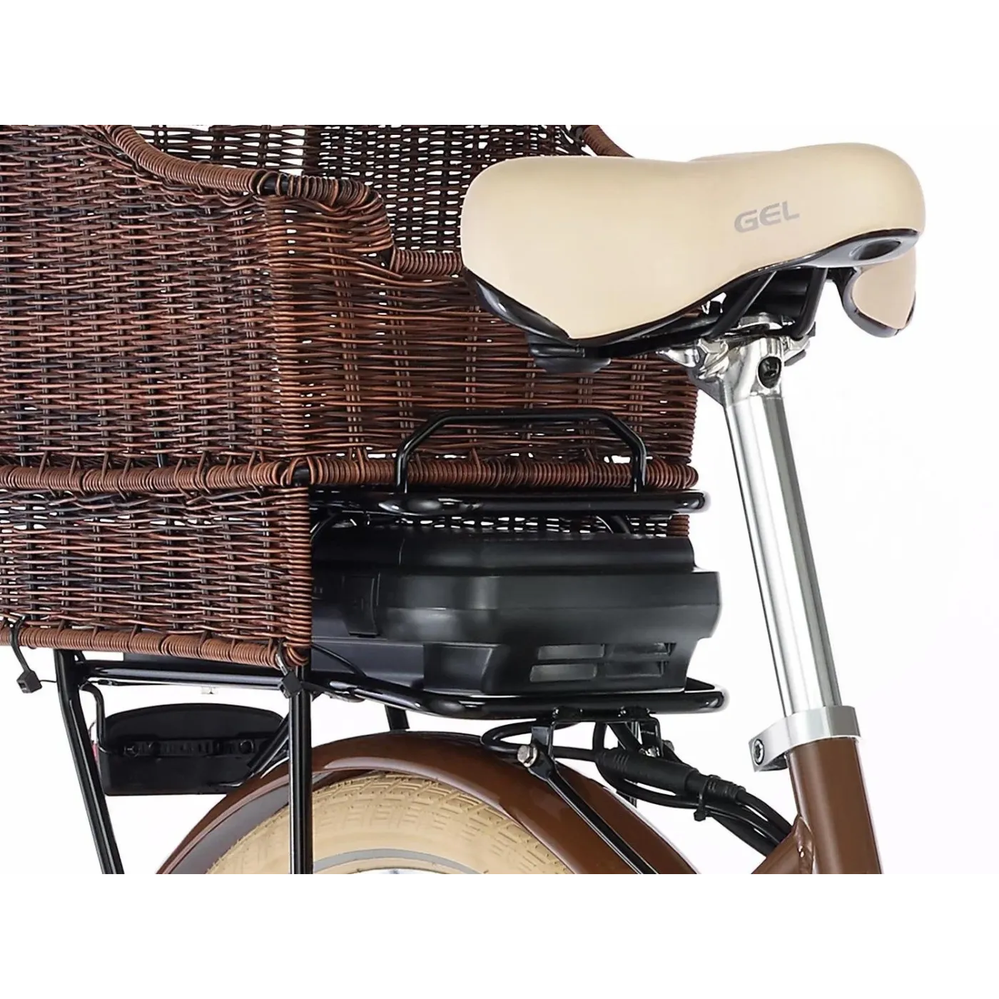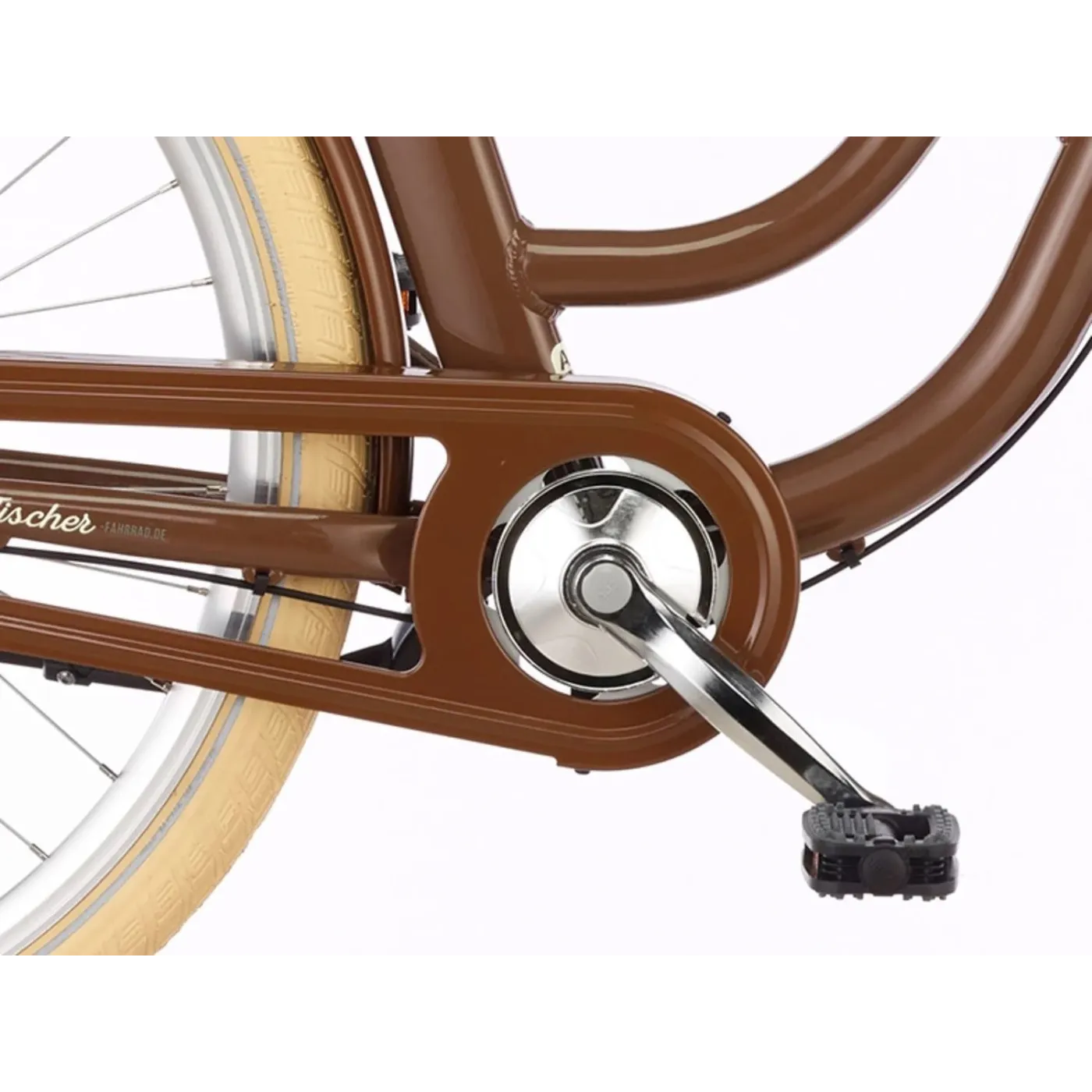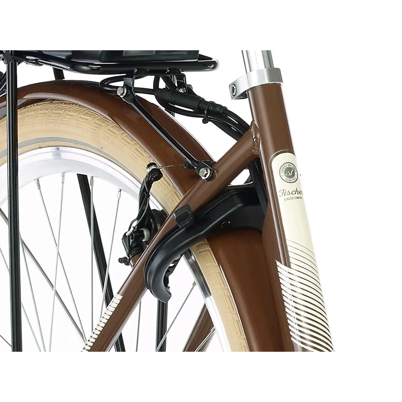Wyjątkową cechą roweru retro Fischer jest akumulator przykryty praktycznym koszem, a kompaktowy przedni silnik jest prawie niewidoczny. Pozycja siedząca jest przyjemnie wyprostowana i zapewnia duży komfort dzięki miękkiemu żelowemu siodełku i zakrzywionej kierownicy. Piasta trzybiegowa i hamulec V-brake to klasyczne i sprawdzone rozwiązanie. Nie zabrakło również udogodnień, takich jak stałe światło LED, osłona łańcucha oraz stopka.