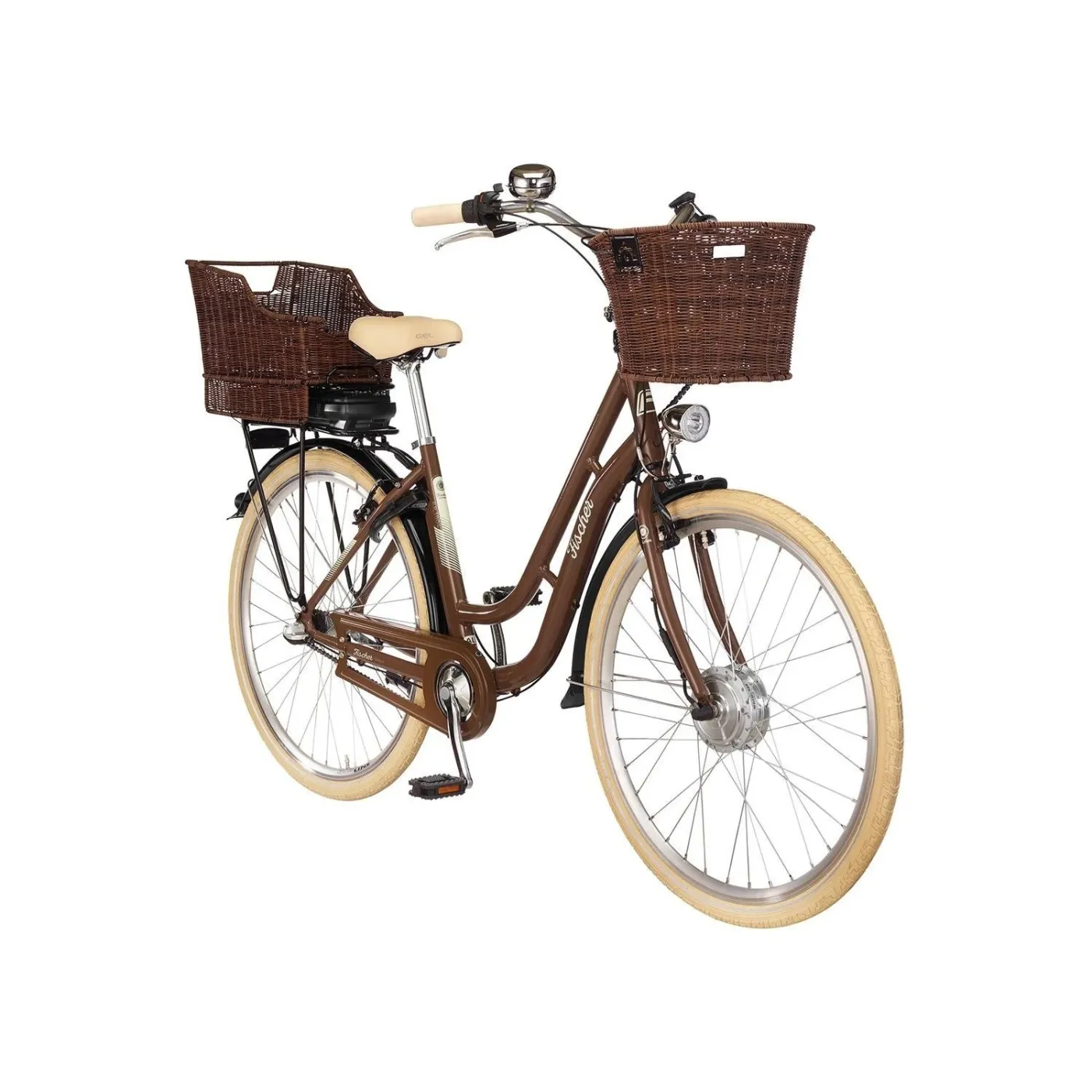 Rower ER1804 Fischer to piękny klasyk z dużymi koszami na żywiołową wyprawę na zakupy.