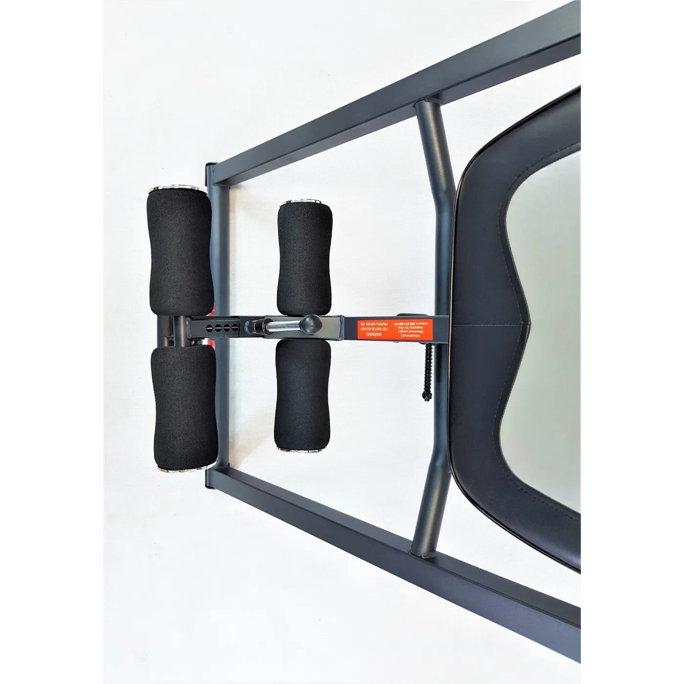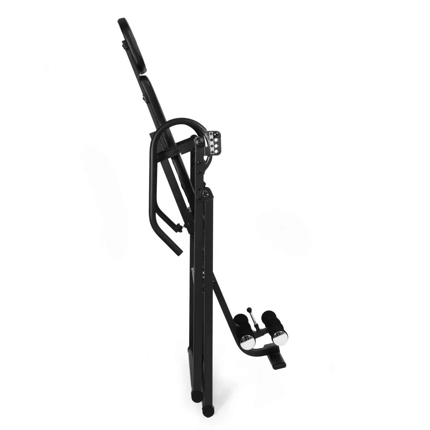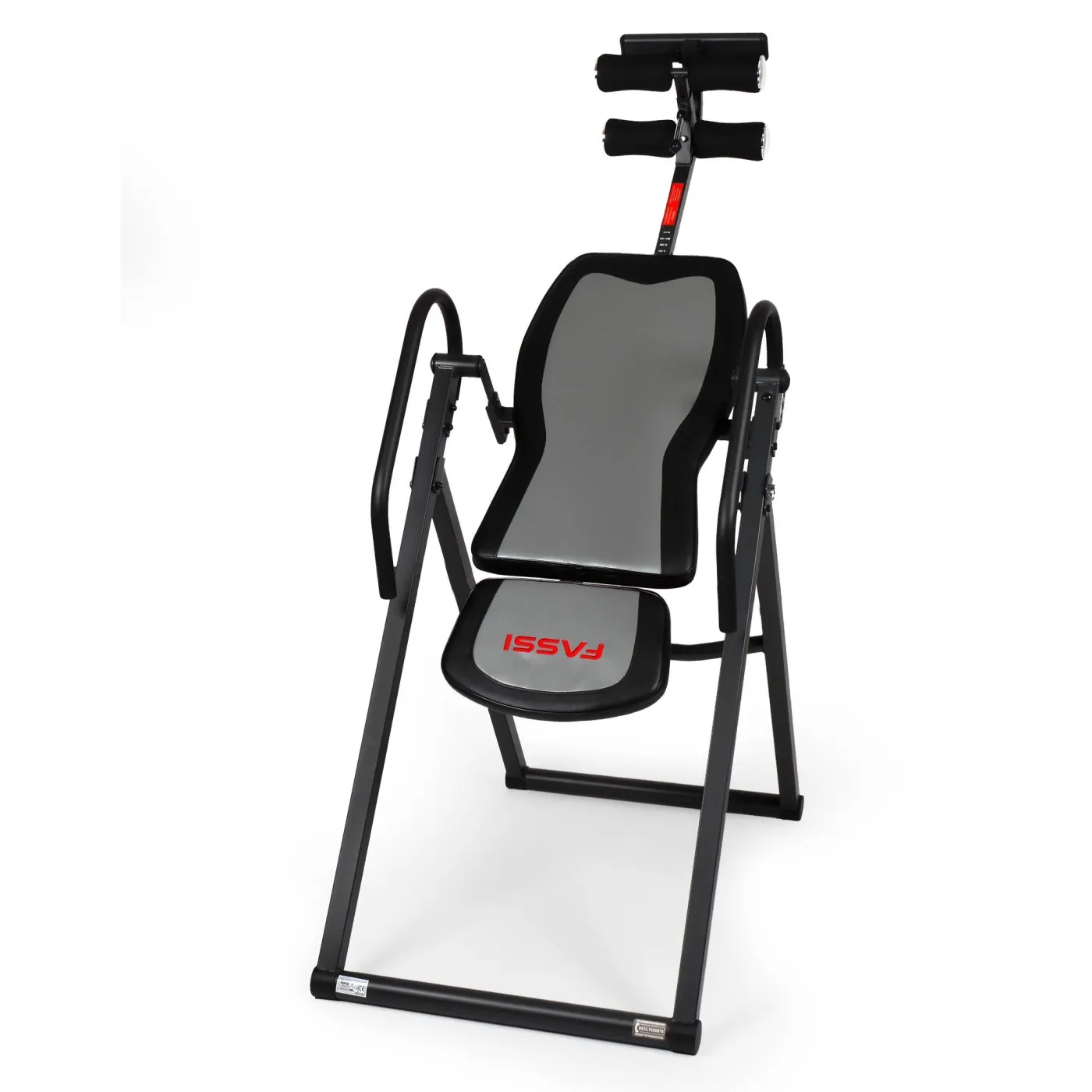 Składana ławka inwersyjna grawitacyjna FP-PW50, zaproponowana przez włoską firmę Fassi, oferuje sztywne oparcie wyposażone w obicie 35 mm, regulację obrotu w 4 różnych poziomach oraz rolki do blokowania kostek dźwignią zabezpieczającą.