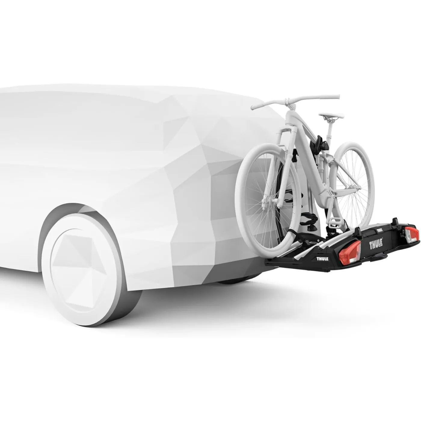 💡 Dzięki zastosowanemu systemowi, nawet z zamontowanymi rowerami można łatwo odchylić bagażnik, zapewniając wygodny dostęp do przestrzeni bagażowej samochodu. Opcjonalnie istnieje możliwość rozszerzenia funkcjonalności poprzez dodanie boxu bagażowego Thule BackSpace, który zmienia uchwyt rowerowy w praktyczny system przewozu ładunków.