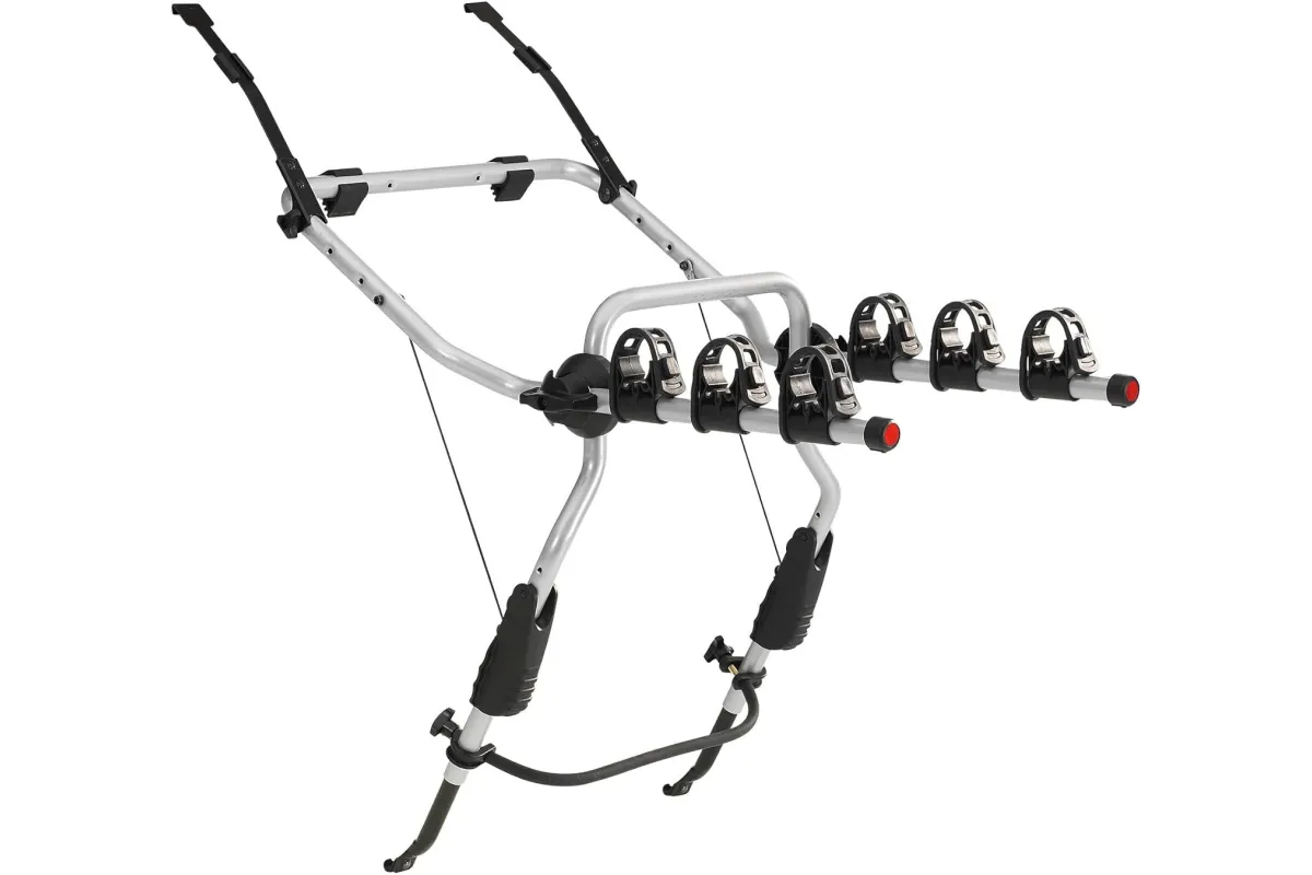 🔧 Bagażnik montowany jest na tylnych drzwiach pojazdu za pomocą intuicyjnego systemu zatrzaskowego, który pozwala na szybkie i stabilne zamocowanie. Dodatkowo wszystkie elementy mające kontakt z powierzchnią samochodu oraz ramą rowerów zostały pokryte miękką gumą, która skutecznie chroni lakier i komponenty przed zarysowaniami.