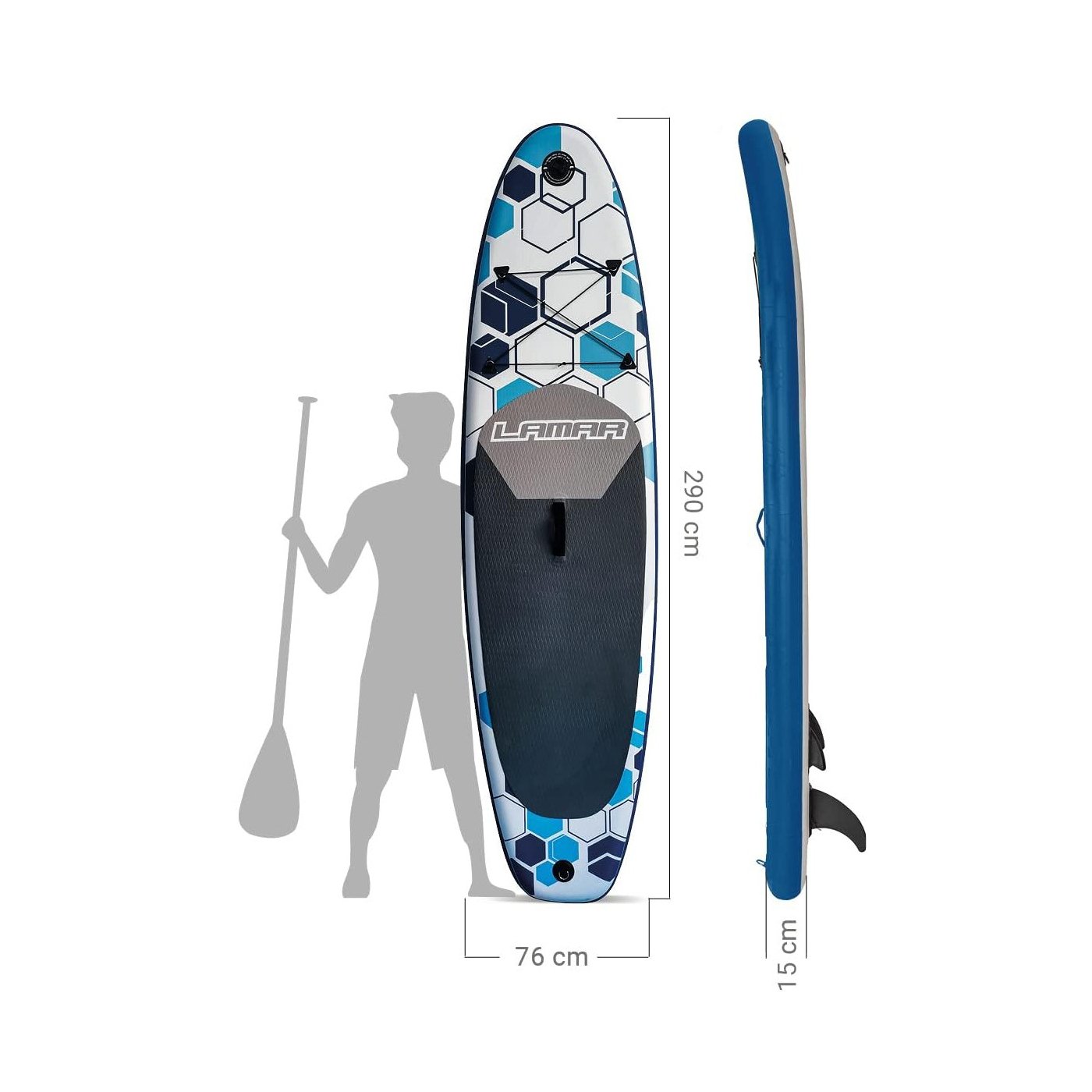 🌊 Lamar Stand Up Paddle 290 - BE COOL to deska, która wyróżnia się spośród innych modeli swoją doskonałą równowagą pomiędzy wygodą, stabilnością i mobilnością. To idealny wybór zarówno dla osób stawiających pierwsze kroki w świecie SUP, jak i dla tych, którzy poszukują sprzętu pozwalającego rozwijać swoje umiejętności na wodzie. Dzięki starannie zaprojektowanej konstrukcji oraz dołączonemu kompletnemu zestawowi akcesoriów, każdy może rozpocząć swoją przygodę bez dodatkowych inwestycji.