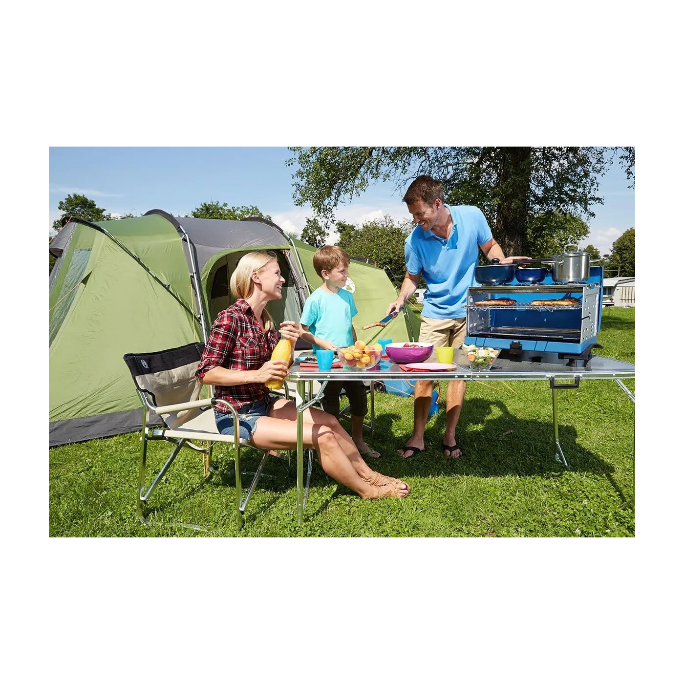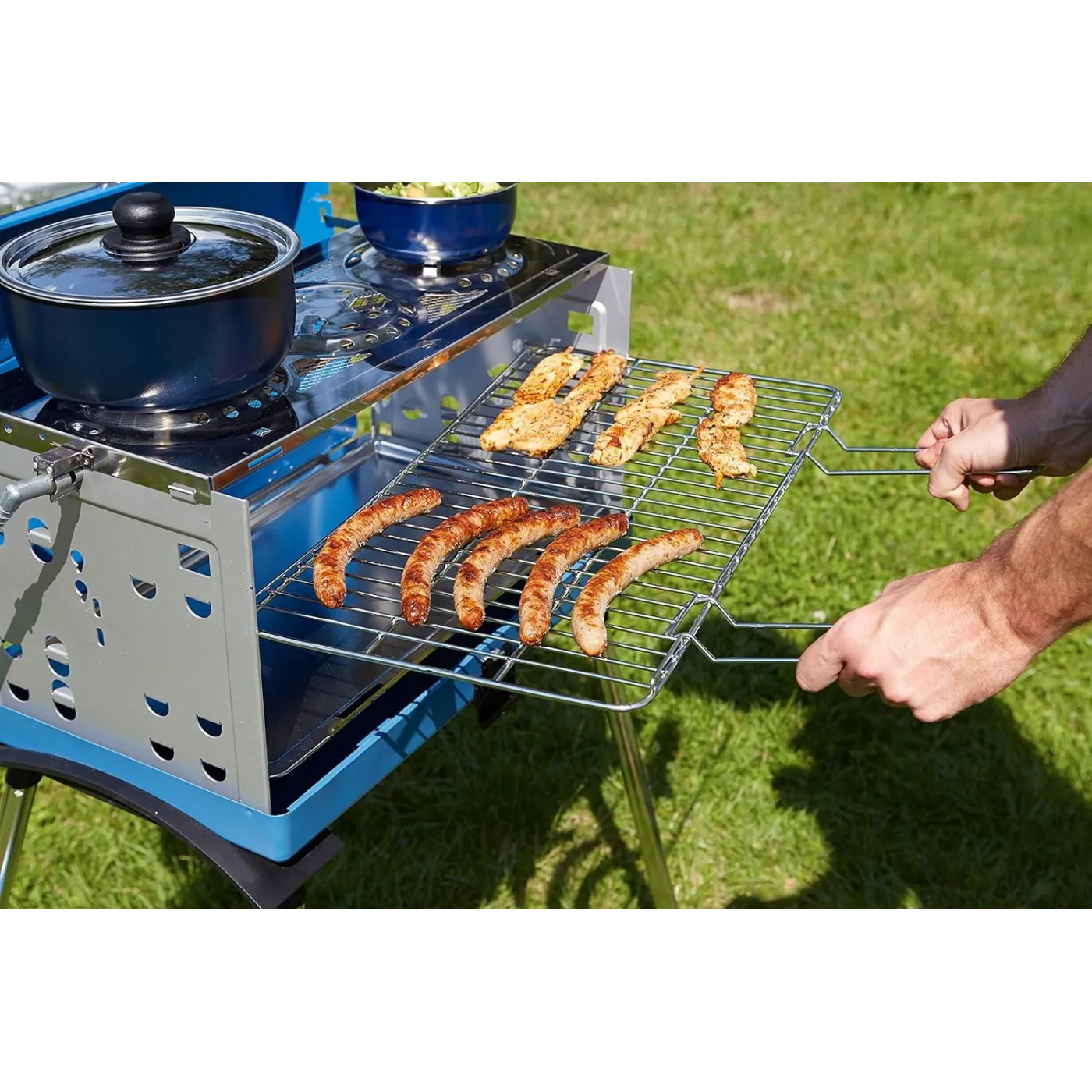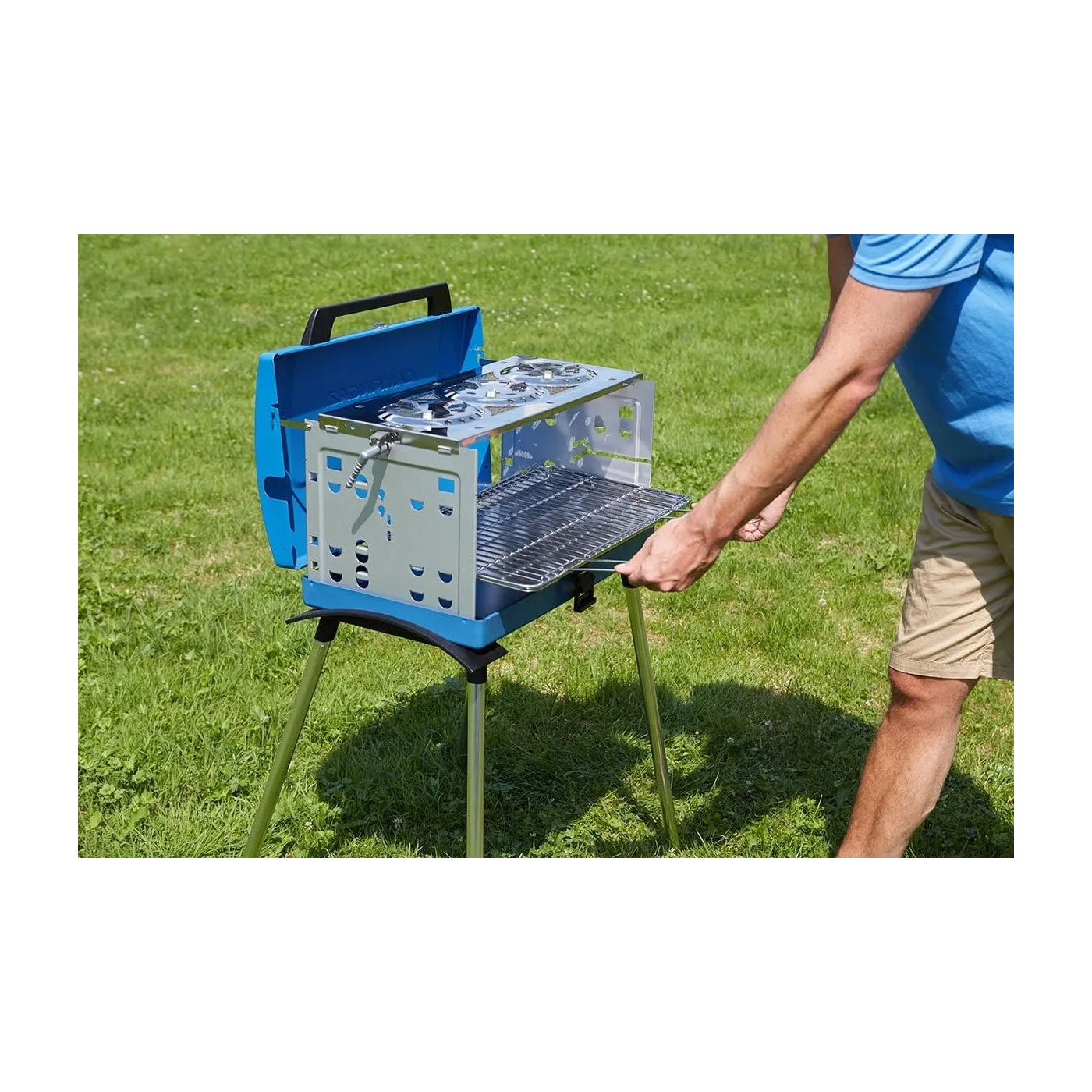 Campingaz Suitcase Grill Stove 200 SGR to wszechstronne urządzenie kempingowe, które łączy funkcje kuchenki i grilla w kompaktowej formie walizki. Umożliwia jednoczesne gotowanie i grillowanie, co pozwala na przygotowanie pełnowartościowych posiłków na świeżym powietrzu. Idealne dla miłośników kempingu, którzy cenią sobie różnorodność w przygotowywaniu potraw.