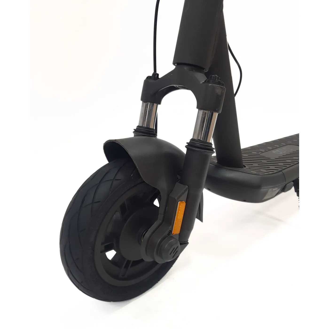 🛴 Hulajnoga została wyposażona w 10-calowe opony pneumatyczne, które zapewniają stabilność i komfort jazdy nawet po nierównych nawierzchniach. Dodatkowo, amortyzator z przodu pozwala na absorpcję wstrząsów, co sprawia, że podróżowanie hulajnogą jest jeszcze bardziej przyjemne.
