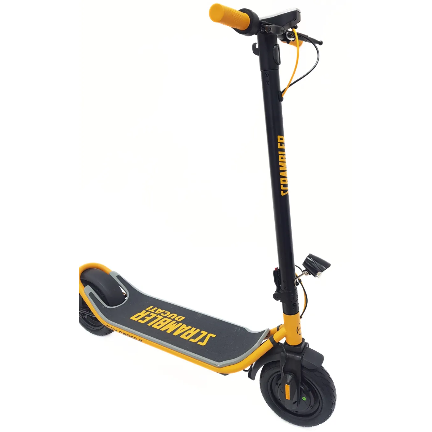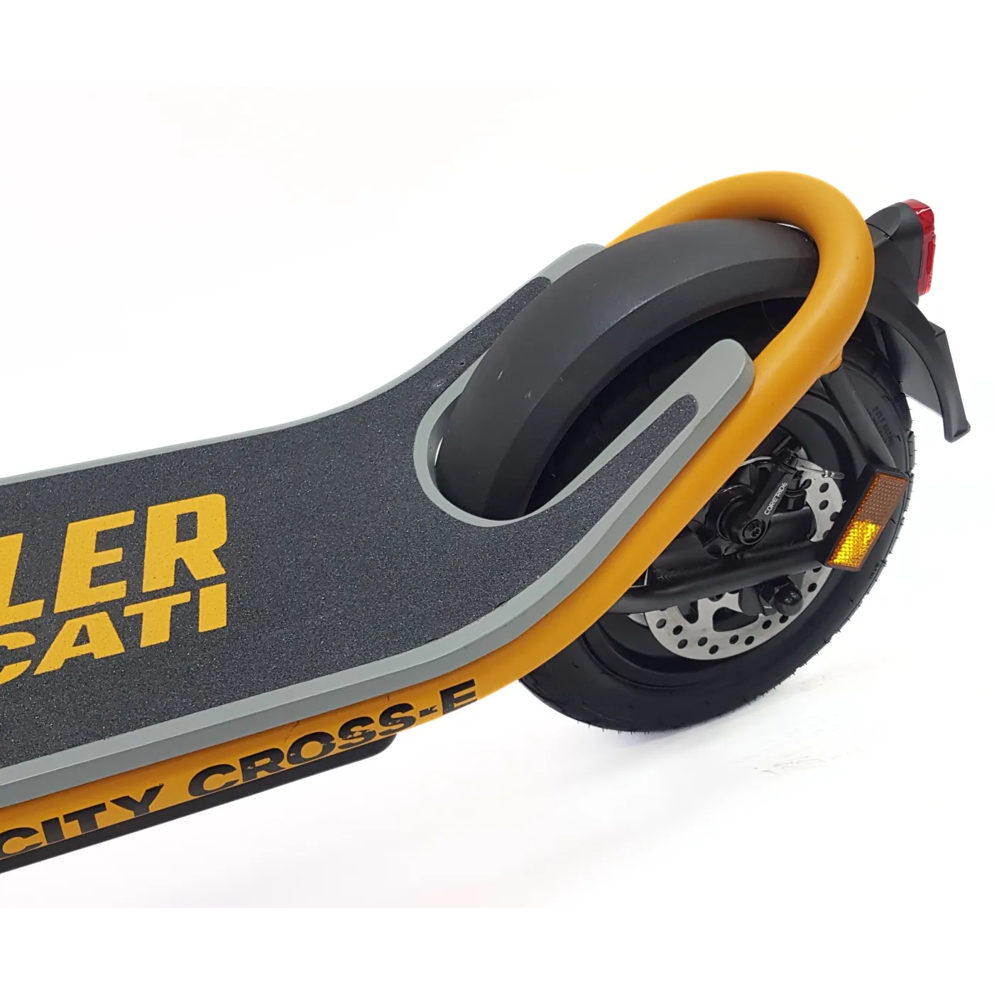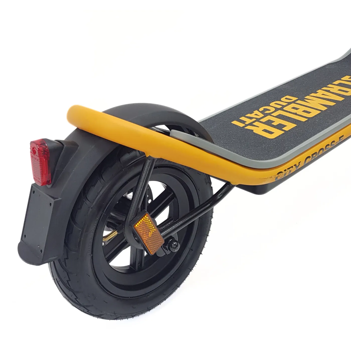 💡 Hulajnoga Ducati Scrambler City Cross-E została wyposażona w przednie i tylne oświetlenie LED, co znacząco poprawia widoczność podczas jazdy nocą. Wbudowany sygnał dźwiękowy oraz tempomat pozwalają na komfortowe i bezpieczne podróże.