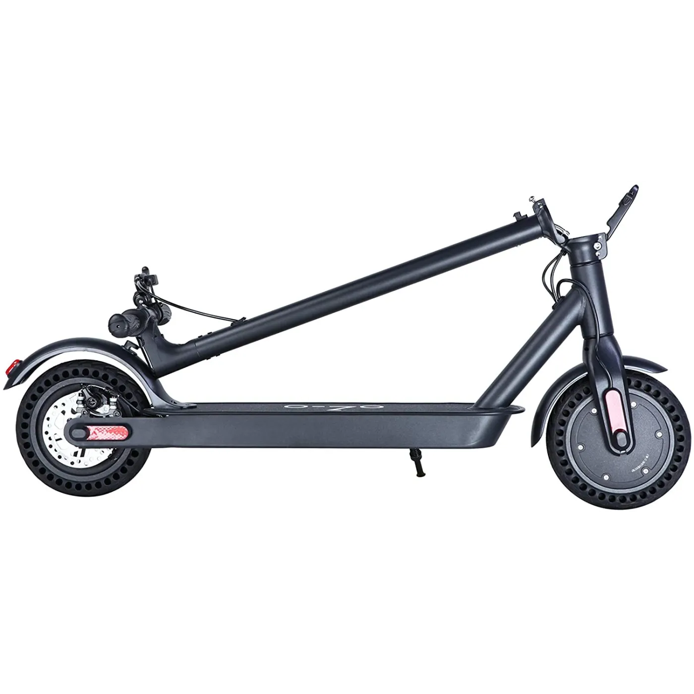 Dzięki lekkiej ramie oraz szybkiemu mechanizmowi składania umożliwia łatwy transport. Dla bezpieczeństwa, hulajnoga wyposażona jest w tylny hamulec tarczowy oraz elektryczny przedni.