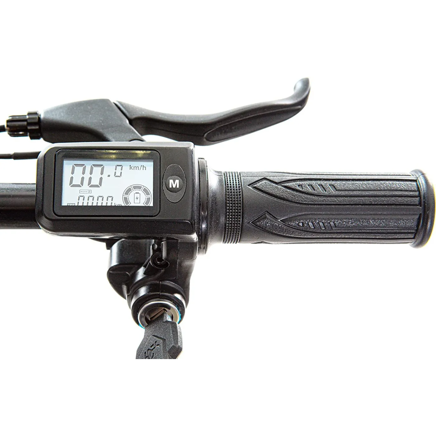 Wbudowany w kierownicę wyświetlacz poinformuje Cię o aktualnej prędkości, stanie naładowania, baterii, trybie jazdy.